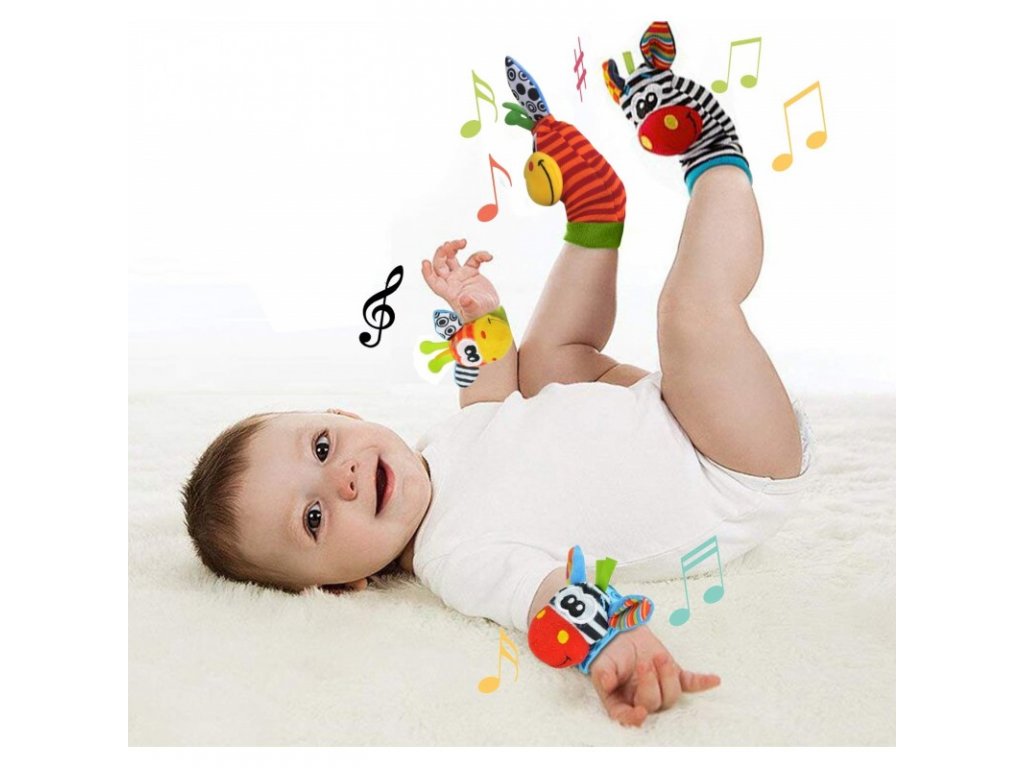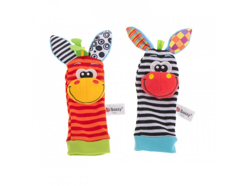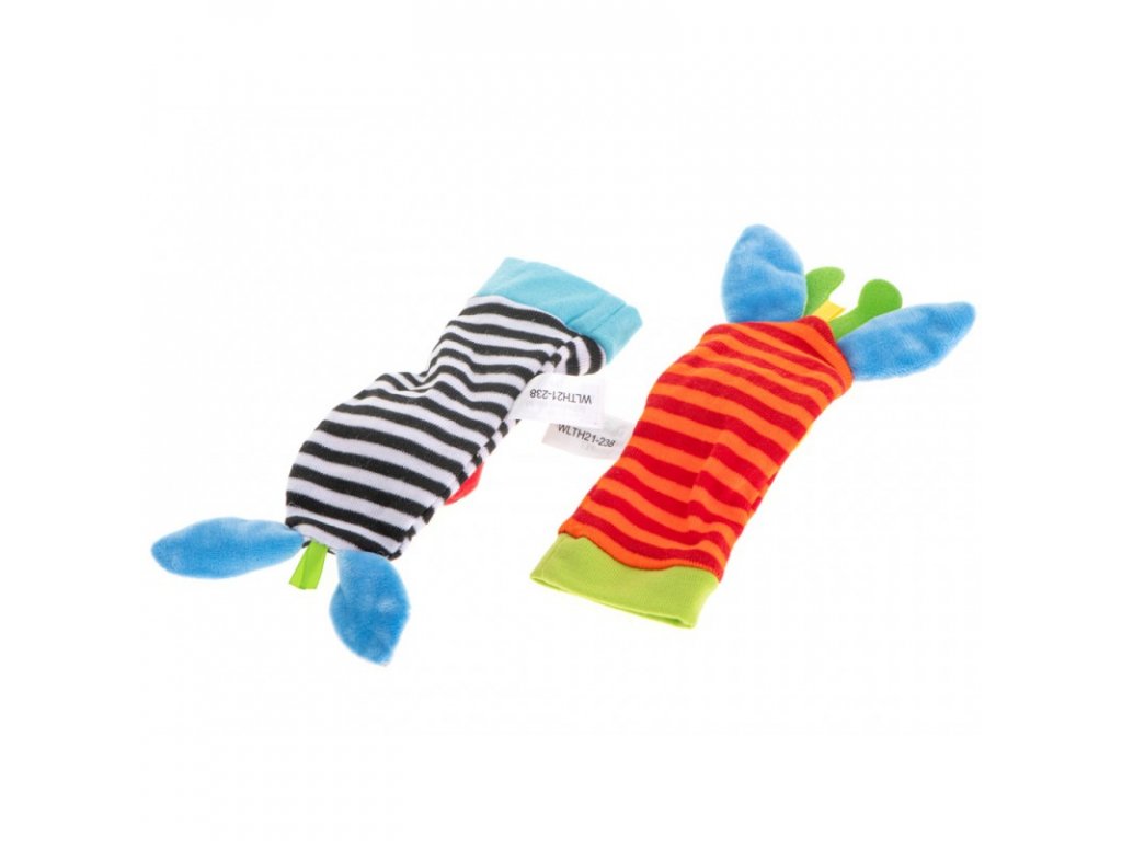 A színes zsiráffal ellátott puha zoknit könnyen fel lehet tenni a gyermekek lábára, amelyet aztán melegen tartanak. Gyakorolni fogja az izmok használatát és megtanulja követni a lábát, amelyre a zoknin lévő színes állatok vonzzák a figyelmét.