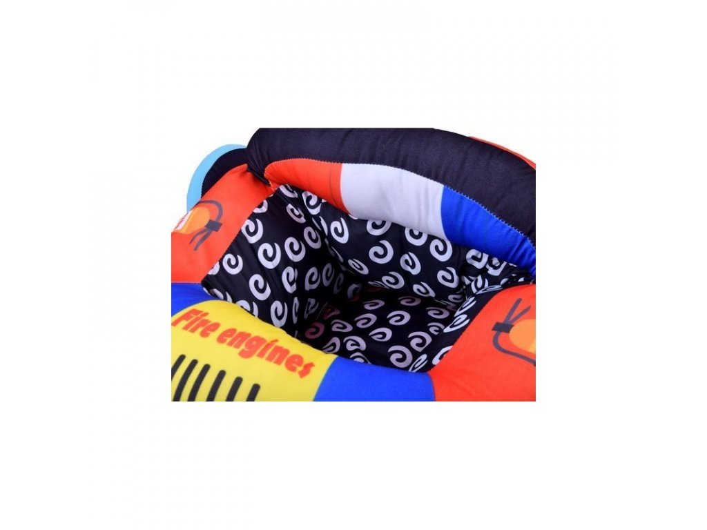 Kényelmes fotel gyereknek. A fotel kialakítása a tűzoltóautó utánzata. A játék puha kerekekkel rendelkezik, amelyek valódi autó megjelenését kölcsönzik a járműnek. A jármű szerkezete négy oldalról támasztékokkal veszi körül a gyermeket, amelyek megvédik a gyermeket a leeséstől és stabil ülést biztosítanak.