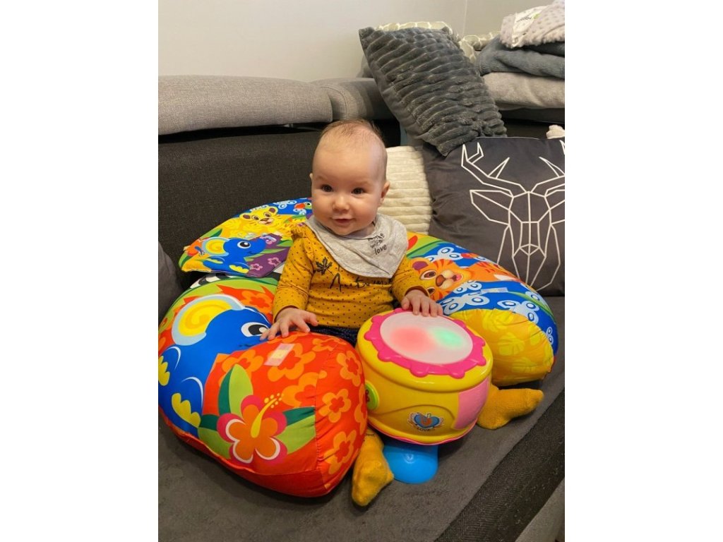 Kényelmes stabilizáló görgős párna gyerekeknek 6 hónapos kortól, jó szolgálatot tesz a gyermek első ülési próbálkozásainál. Puha betéttel van feltöltve és egy kis szőnyeg is rögzíthető rá, ami asztalként szolgál. A párna minden eleme puha, biztonságos, és színes és vonzó dizájnnal készült.