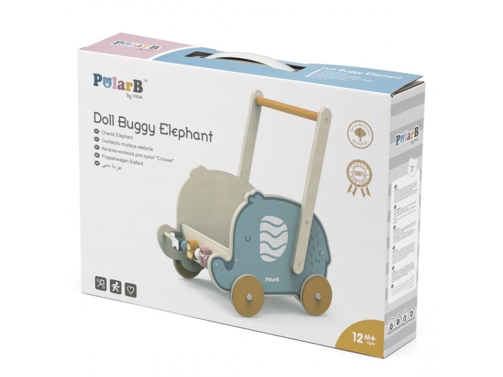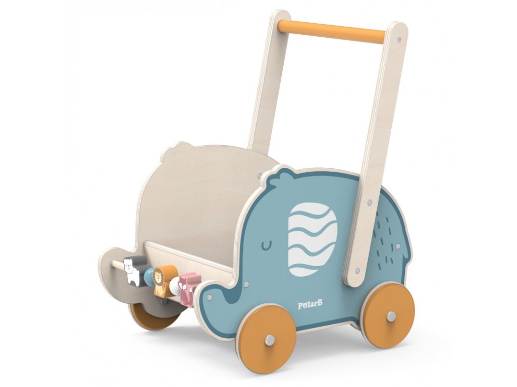Az imádnivaló elefánt dizájnjával ellátott fa kocsi tökéletesen támogatja a finom- és kismotorika fejlesztését. A fa gyermekkocsi az egyik leggyakrabban választott játék azoknak a gyerekeknek, akik most kezdik megtenni első lépéseiket. A fakocsival sétálni igazi élvezet, segít gyermekeinek egyensúlyban tartani és javítja a járást. Az egész a legjobb minőségű bükkfából készült. A fa kocsit gyermeke babakocsiként vagy kocsiként használhatja. A babakocsi fiúknak és lányoknak egyaránt tetszik. A lányok babák, mackók és más plüssállatok szállítására használják a kocsit, míg a fiúk blokkokat, szerszámokat és sok más tárgyat szállítanak vele. Ennek a babakocsinak köszönhetően megfigyelheti, hogyan sajátít el gyermeke új motoros készségeit.
