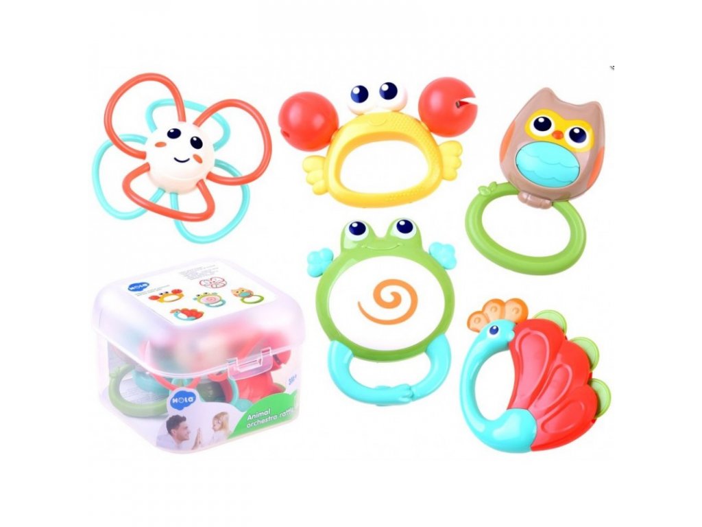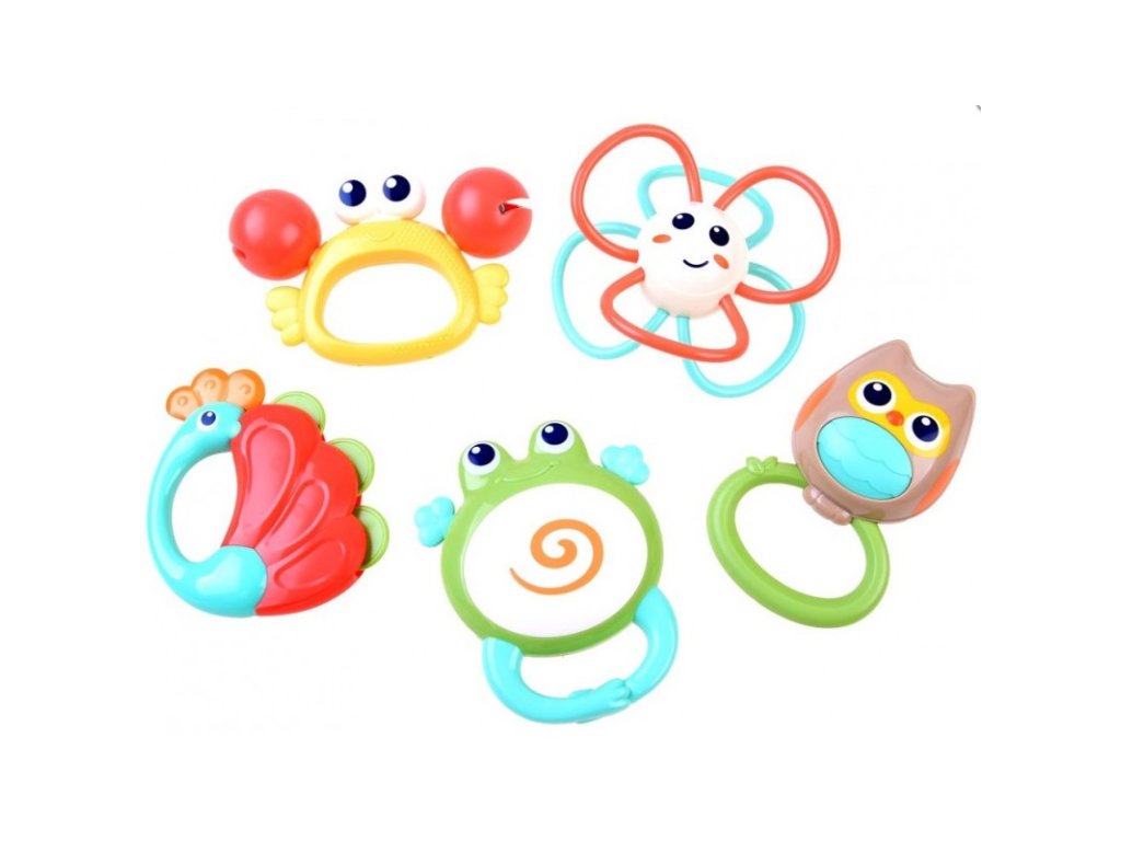 Az 5 db-os színes csörgőkészlet tökéletes ajándék a legkisebbeknek. A készlet különböző textúrájú műanyagból készült, ami különösen fogzáskor segít. Ha a csörgőt megrázzák, zörög.