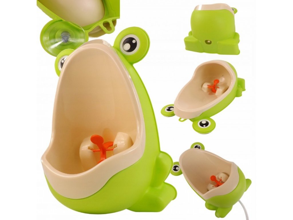 A gyermekek piszoárja béka formájában edző WC-ként szolgál majd a 6 év alatti kisfiúk számára. Csatlakoztassa csak a vizelt a falhoz a kívánt magasságban. Használat után egyszerűen ürítse ki, tisztítsa meg és tegye vissza. A béka egy praktikus eszköz, amelyet minden szülő értékelni fog. A tisztítókefét a csomag tartalmazza.