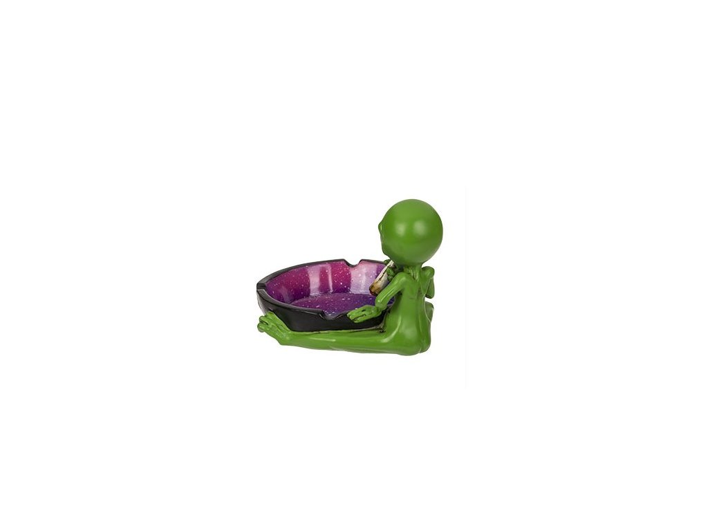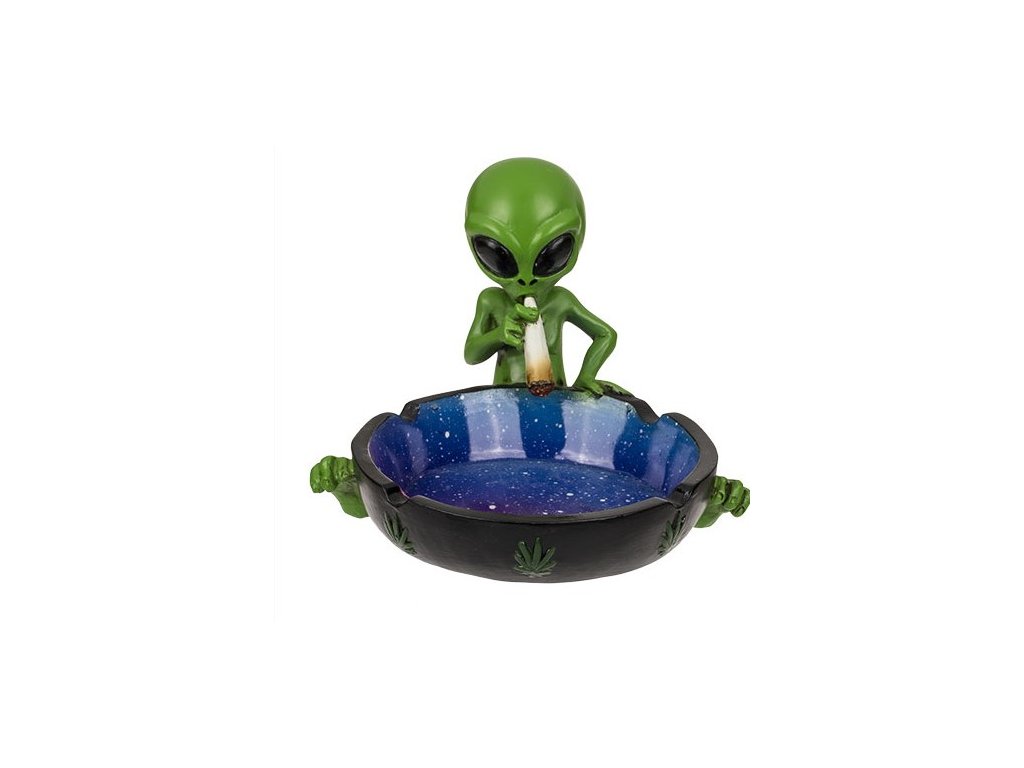 Remek kütyü dohányosok és idegen civilizációk rajongói számára. Polirezin hamutartó Földönkívüli jointtal ábrázoló képével. Az asztal alján egy címke található, amely megakadályozza az asztal megkarcolódását. A hamutartó két színben kapható, mintakeverékként áruljuk.