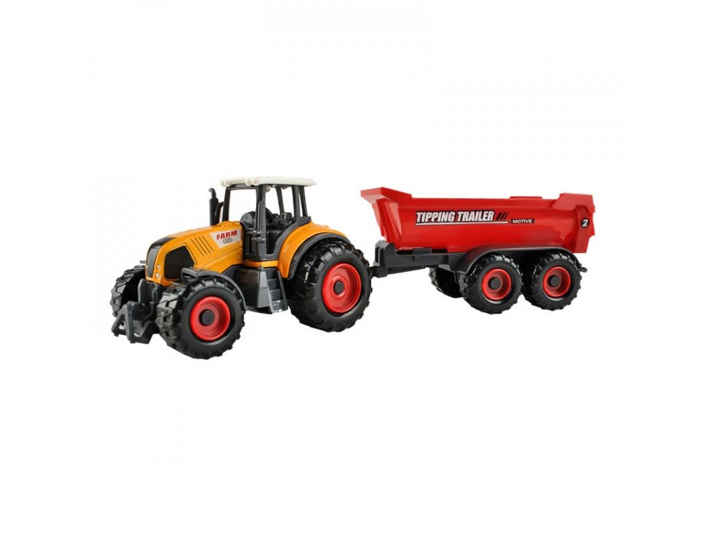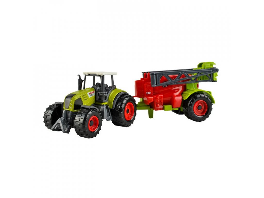 LEÍRÁS - életkor 3+; CE, EN 71 tanúsítványok; készlet súlya 300; a készletben 2db traktor, állatszállító pótkocsi, billenő, permetezőgép, présgép.