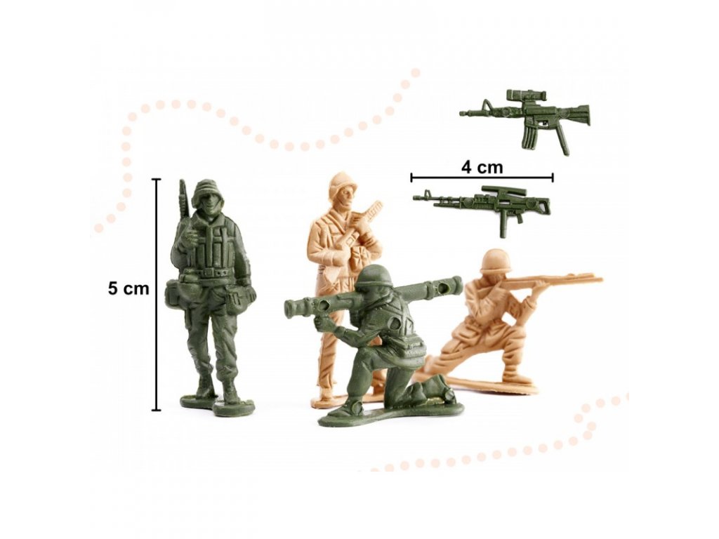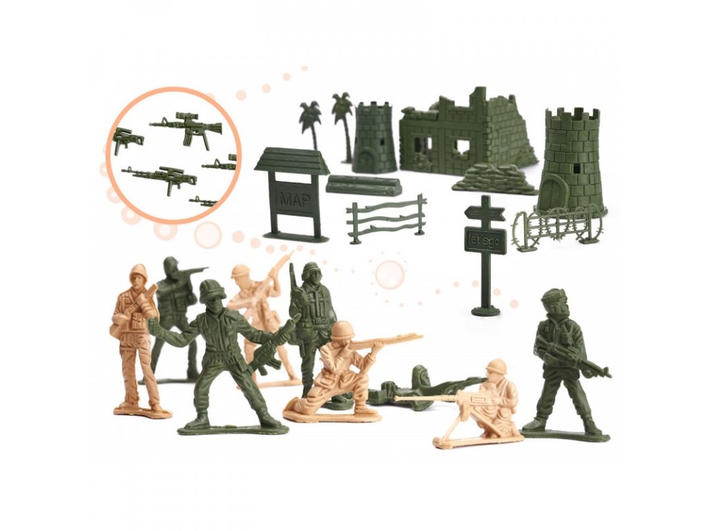 Gyönyörű ajándék a hadsereg és a katona szerelmeseinek. A kis stratéga csataterveket és stratégiákat készíthet, és harcolhat az ellenségek ellen. Nagyszerű többjátékos játékok. Tekintettel arra, hogy a készlet akár 114 alkatrészt tartalmaz, több fiú is könnyen nyerhető. Alkalmas kreatív, nagy képzelőerővel rendelkező gyermekek számára.