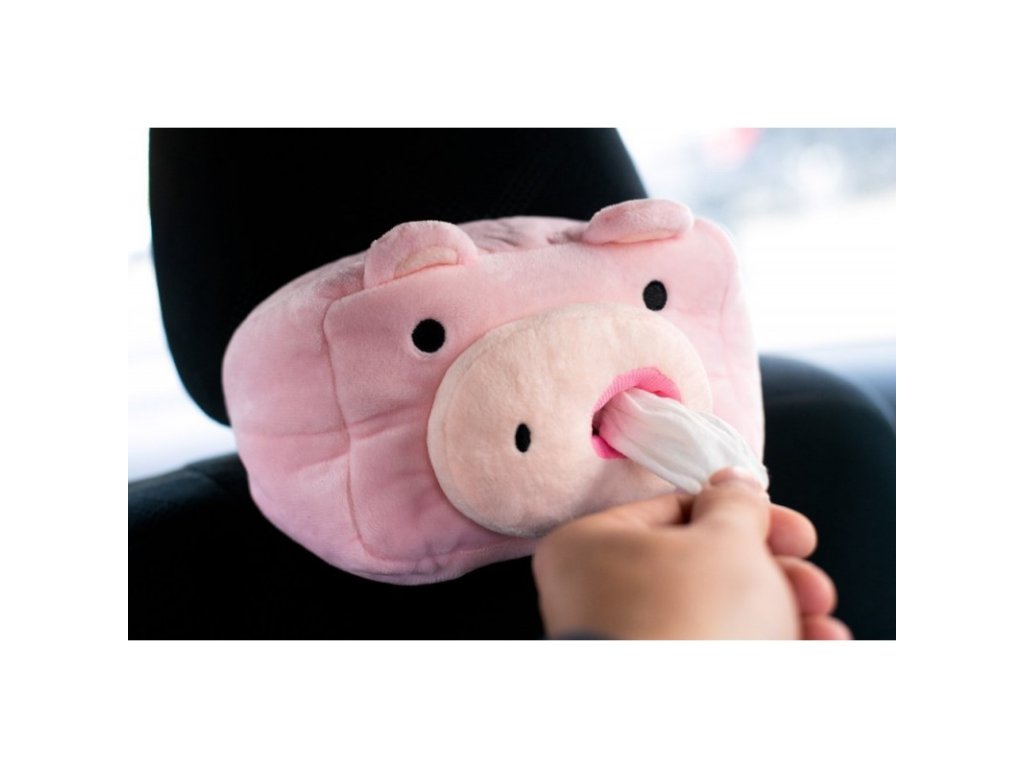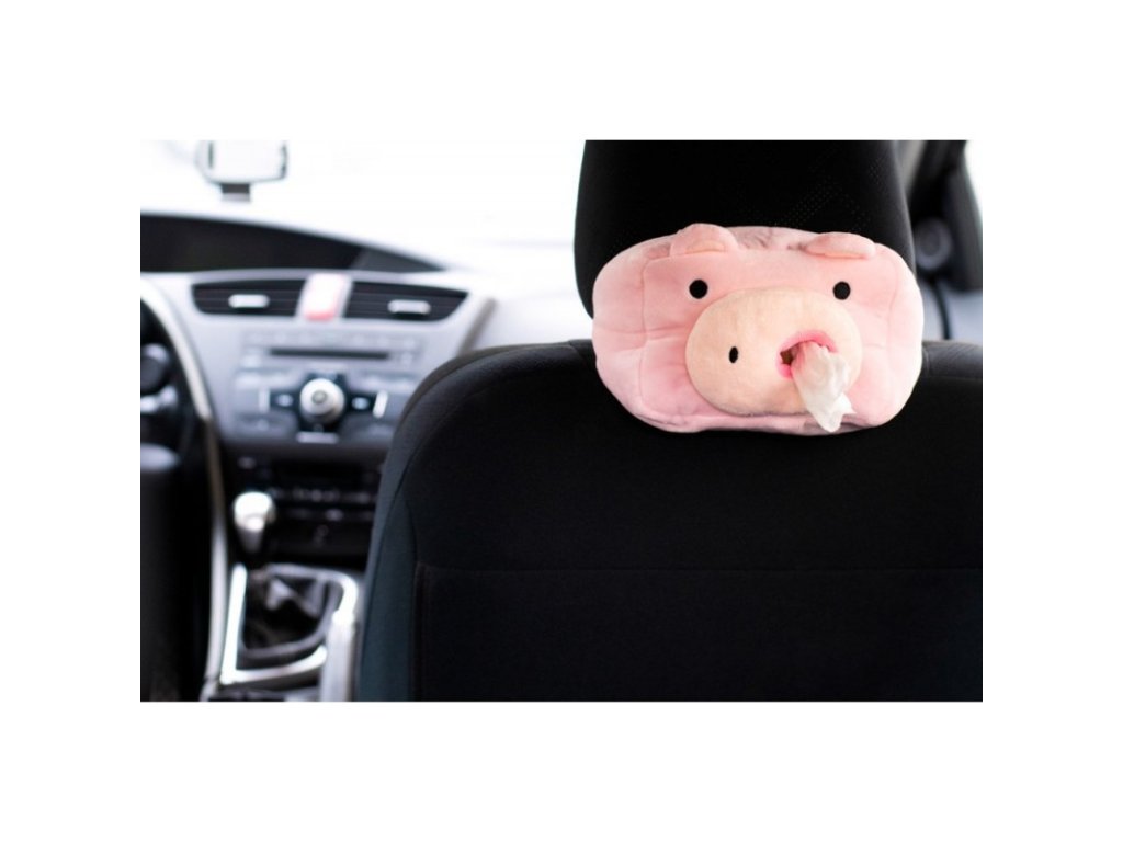 Plüss malacka az autóban papírzsebkendőknek