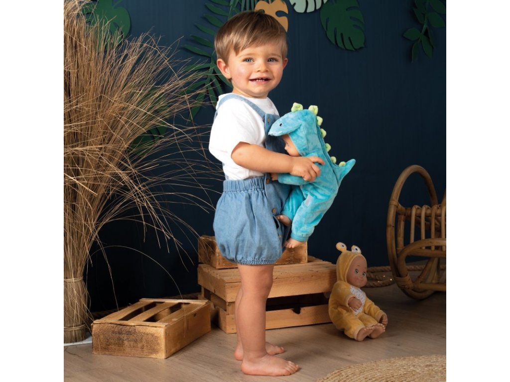 Egy imádnivaló babát dinoszaurusz jelmezben a legkisebb gyerekeknek ajánlanak. A babák a világ leghíresebb játékai. Kétségtelen előnyük, hogy bárhová magaddal viheted őket - kirándulásra, óvodába vagy nyaralásra a nagyszülőkhöz.