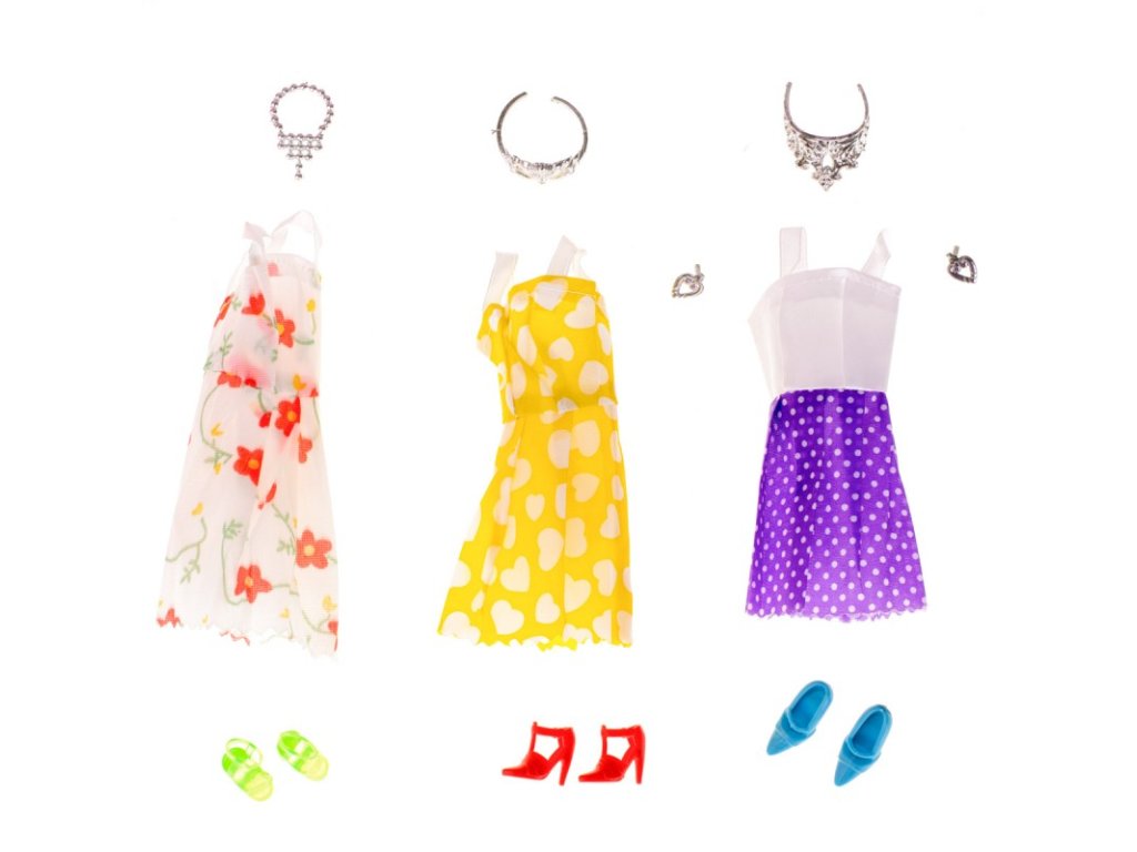 Színes ruhák és kiegészítők minden babához. A babáknak szánt gyönyörű ruhák lehetővé teszik, hogy divattervezőt játssz, kifutót készíts a modelleknek, vagy divatbemutatót készíts.