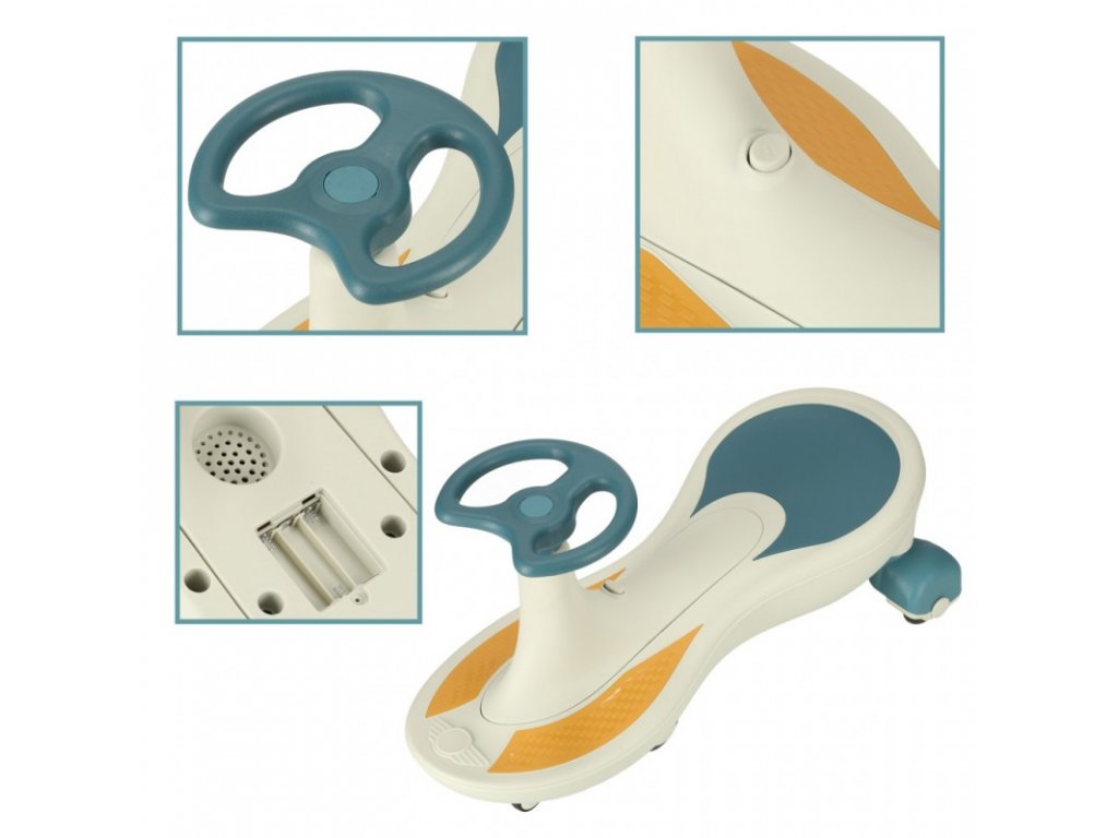 A gravitációs lovaglás gyerekeknek és felnőtteknek egyaránt szórakoztató – a maximális teherbírás 100 kilogramm. Ezt a szokatlan járművet a kéz mozgása hajtja – a kormánykereket felváltva kell mozgatni jobbra és balra. Vezetés közben aktiválódó LED kerekekkel és AAA elemekkel működő beépített dallamokkal rendelkezik.