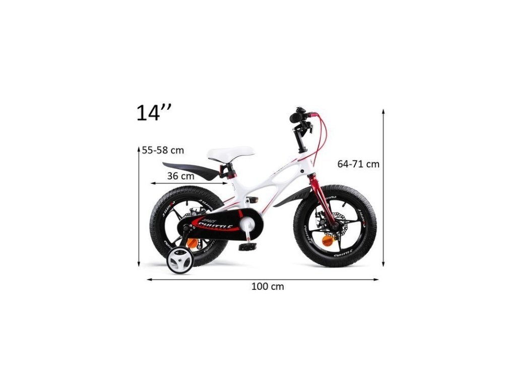 A neves márka Royal Baby Space Shuttle 16" gyerekkerékpárja az első minőségi kerékpár kezdőknek két keréken. Könnyű magnéziumváz ívelt felülettel, sima vonalakkal. Állítható kormánykerék biztonságos gumi markolatokkal, lánc biztonsági huzattal, kényelmes ülés , 16 colos kerekek, kiváló minőségű gumiabroncsok és biztonságos fékrendszer dupla tárcsafékkel biztosítják a kényelmes és stabil utazást.Az összecsukható állvány lehetővé teszi a gyermek számára, hogy biztonságosan támassza a kerékpárt utazás után.