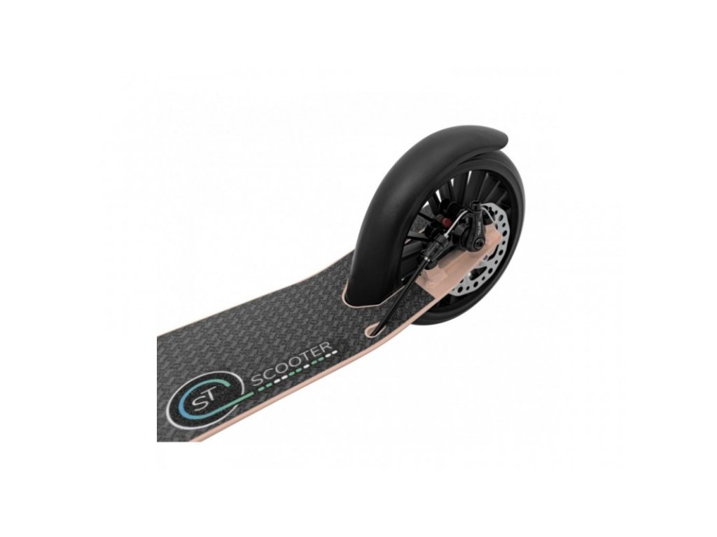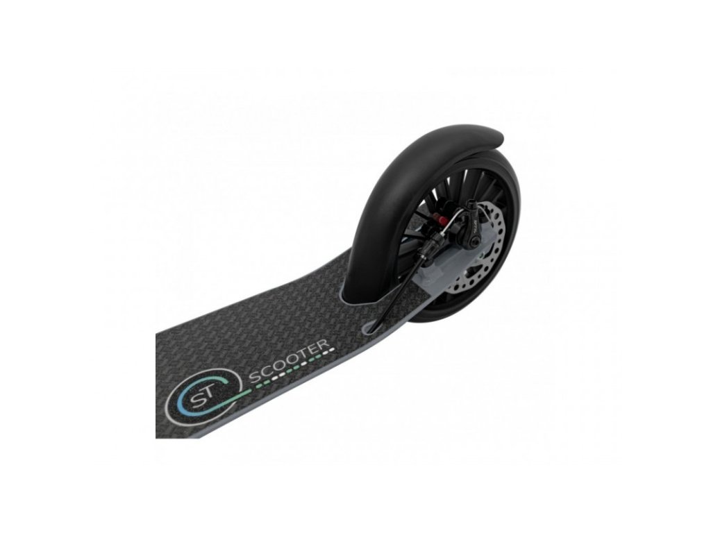 A vezetés biztonságát két fék - egy kézi tárcsa és egy lábfék - garantálja, amelyek kiváló irányíthatóságot és gyors reagálást biztosítanak minden helyzetben. A robogó alján található csúszásgátló anyag biztosítja a stabil és biztonságos tartást, így minimálisra csökkenti a csúszás kockázatát.