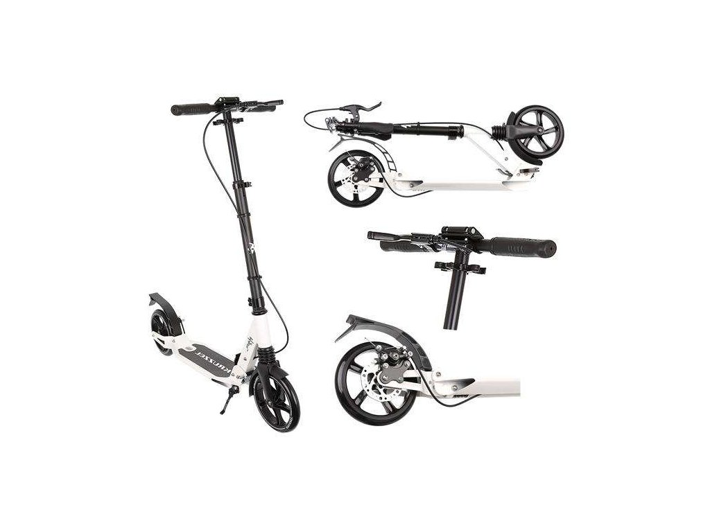MAGASSÁG BEÁLLÍTÁS A "KATTINTÁSHOZ" - a robogó 3 fokozatú kormánymagasság-állítással rendelkezik. A kormánykerék magasságának megváltoztatásához egyszerűen nyomja meg a gombot, és helyezze be az alatta vagy felett lévő lyukba. Ez a robogó alumínium talppal rendelkezik, ami könnyűvé teszi (6,5 kg).