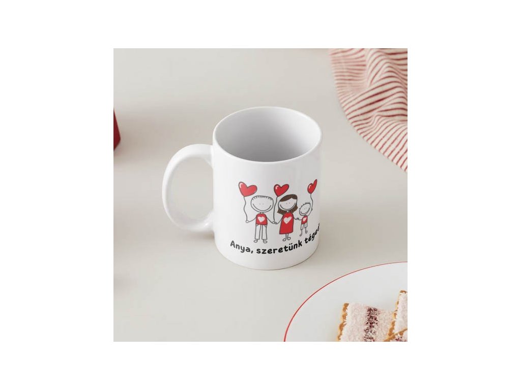 A bögre klasszikus fehér dizájnnal rendelkezik, amelyet gyengéd és szeretetteljes nyomat díszít, olyan motívumokkal, amelyek az anyaságot és az anyák végtelen szeretetét ünneplik gyermekeiknek. A szublimációs nyomtatási technika gondoskodik arról, hogy a képek, szövegek élesek, élénkek és fakulásállóak legyenek, így a bögre végső megjelenése sok használat után is szép marad.