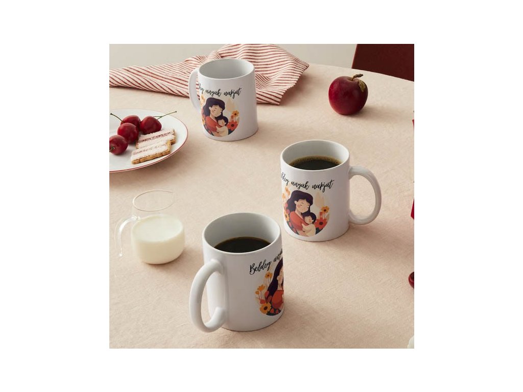A bögre klasszikus fehér dizájnnal rendelkezik, amelyet gyengéd és szeretetteljes nyomat díszít, olyan motívumokkal, amelyek az anyaságot és az anyák végtelen szeretetét ünneplik gyermekeiknek. A szublimációs nyomtatási technika gondoskodik arról, hogy a képek, szövegek élesek, élénkek és fakulásállóak legyenek, így a bögre végső megjelenése sok használat után is szép marad.