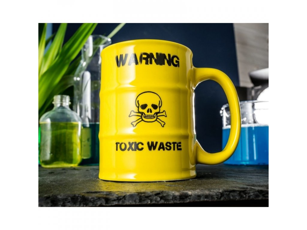 Ez a hordó alakú bögre Toxic Waste felirattal minden szellemes, humoros embernek megfelel. A fényvisszaverő sárga szín támogatja az emberek aktivitását és kreativitását a munkahelyen. Ezt a bögrét nem fogja könnyen elveszíteni, mert jellegzetes sárga színe van. A kapacitás kiválóan alkalmas kávé, tea vagy bármilyen más ital elfogyasztására.