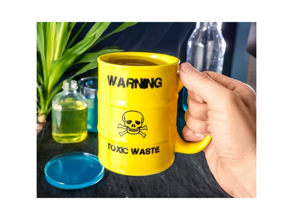- hordós bögre nyomattal: MÉRGEZŐ HULLADÉKOK FIGYELMEZTETÉS koponya képpel