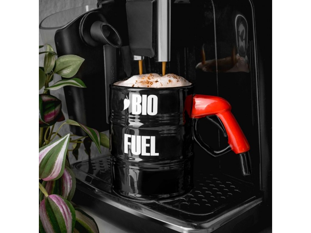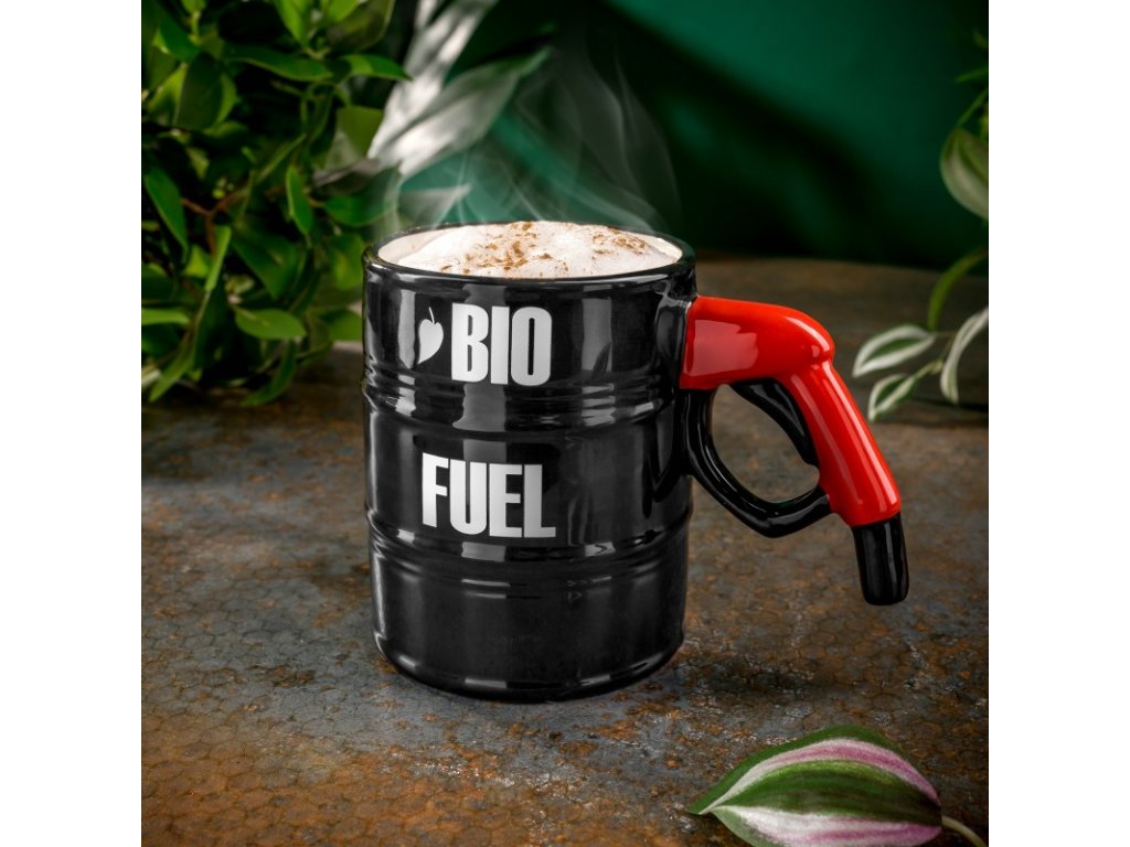 Minden reggel energiára van szüksége? Fogja meg olajhordós bögrénket tankpisztoly nyéllel, és pumpáljon fel egy kis bioenergiát.