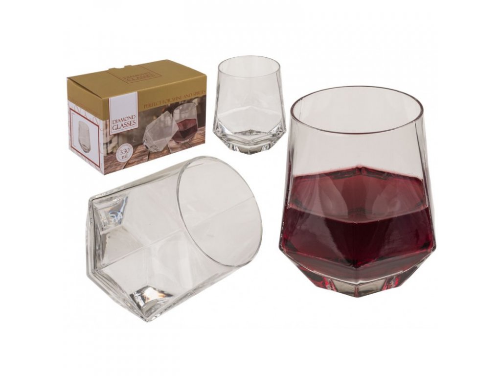 A nem hagyományos poharakat, amelyek szokatlan kialakításuknak köszönhetően felkeltik a figyelmet, a kiváló minőségű alkoholos italok minden ismerője értékelni fogja. A pohár úgy néz ki, mint egy gyémánt, és nagyon szokatlan módon áll, hogy az ital "lélegezzen". A poharak kiváló minőségű üvegből készülnek.