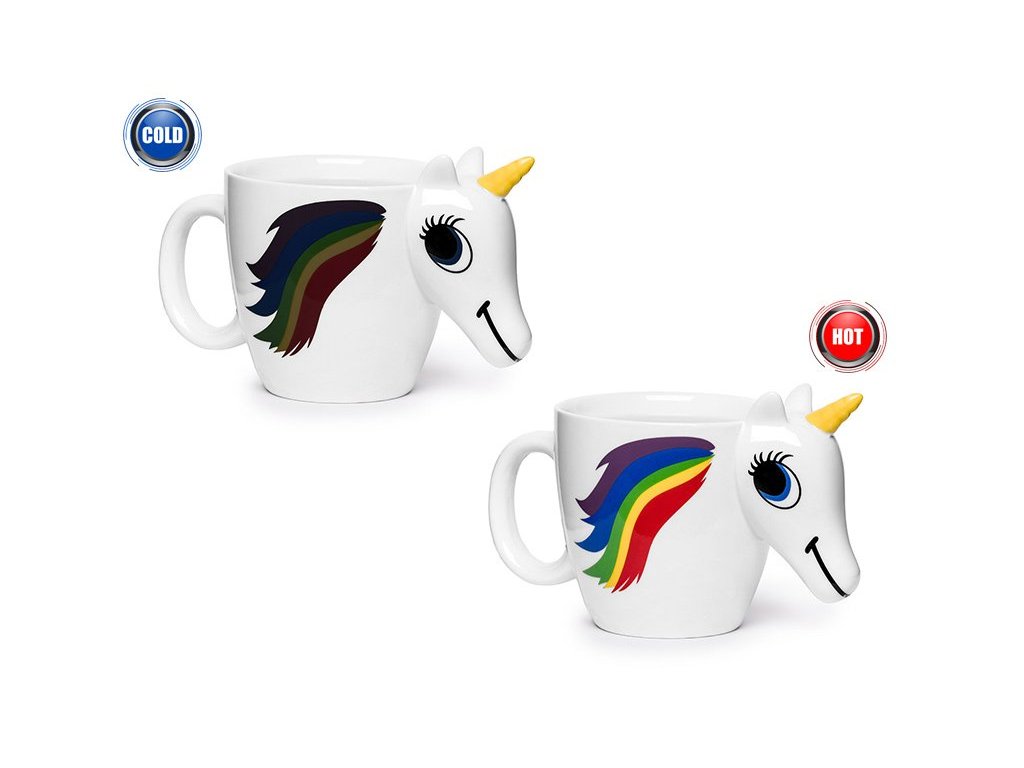 Aranyos egyszarvú bögre 3D-s arccal és szarval. Csak öntsön bele meleg vizet, és a bögre elkezd színt változtatni. Ez egy tökéletes ajándék mindenegyszarvú vagy tea imádónak. Az egyszarvú mágikus érzéseket vált ki, ezért nagyszerű ajándék mindenki számára, aki kedveli a mágikus pillanatokat.