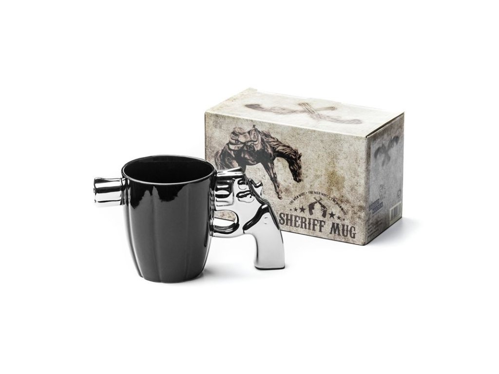 Azt lehetne mondani, hogy minden srác olyan, mint egy seriff - rendet kell tartania, járőröznie kell a környéken és irányítani az egész helyzetet, parancsokat vagy véleményeket kell adnia jobbra és balra. Miért ne tenné boldoggá azzal, hogy megadja neki a megérdemelt revolvert? Ne aggódjon – nem kell fegyverboltot felkeresnie. Nem kell más, mint a seriff bögrénk, melynek revolver füle és kiálló csöve minden domináns személyiségű férfinak tetszeni fog. A seriff bögre nagyszerű ajándék nem csak a főnöknek, hanem egy olyan barátnak vagy családtagnak is, aki rendelkezik vezetői képességekkel és szeret irányítani.