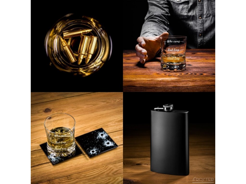 - whiskys poharak három fokozattal: Good Day, Bad Day és Who cares