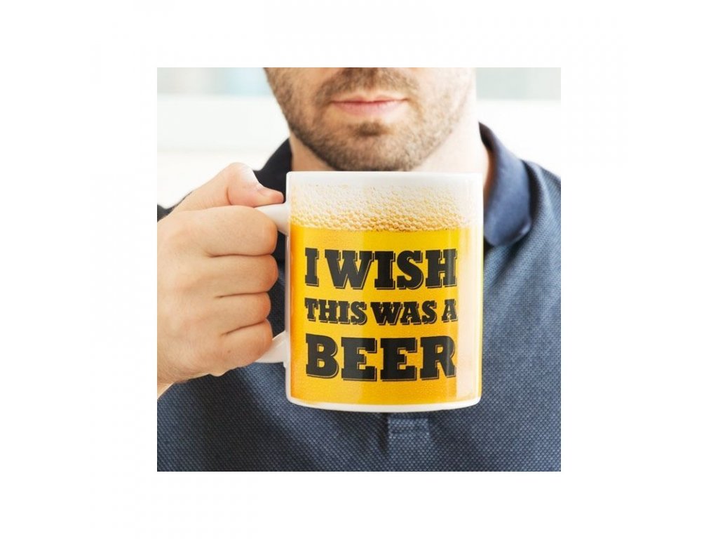 Extra nagy bögre extra nagy kávéhoz vagy más kedvenc italhoz. A bögre úgy néz ki, mint egy fehér habos sörrel teli pohár. Tartalmazza a "I WISH THIS WAS A BEER" címet, ami azt jelenti, hogy "bárcsak ez egy sör lenne". Tökéletes minden kávérajongó számára.
