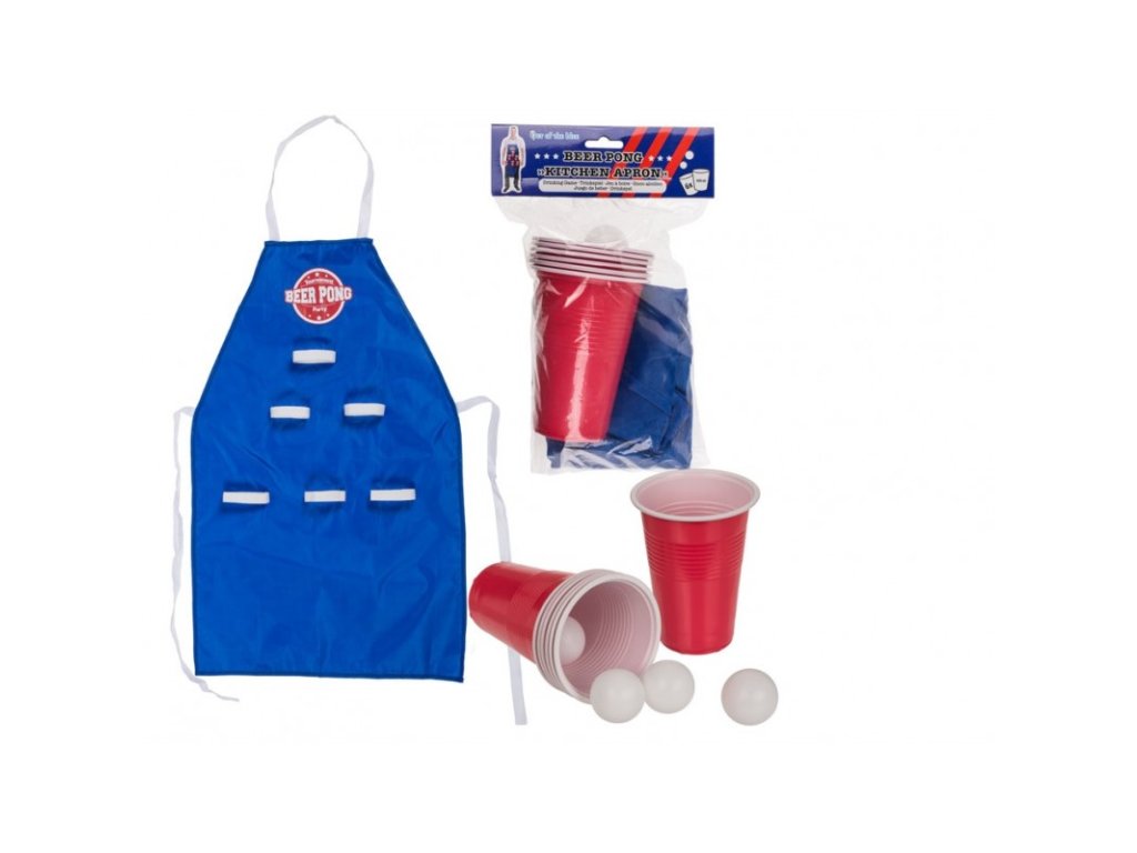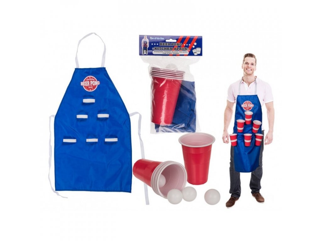 A Beer Pong egy remek társasjáték, amely ezentúl a kedvenc időtöltése lesz bármelyik bulin! A játék csak felnőttek számára alkalmas. A szabályok egyszerűek - csak dobjon egy pingpong labdát a söröspoharakba, amelyeket a kötényen lévő tartókban helyeztek el - a buliban lévők közül az egyik fogja viselni. Amikor az egyik játékos beleüti a labdát a csészébe, a kötényt viselő személynek meg kell innia a sört abból a csészéből. A készlet 6 műanyag söröspohárból, 4 golyóból és egy kötényből áll.