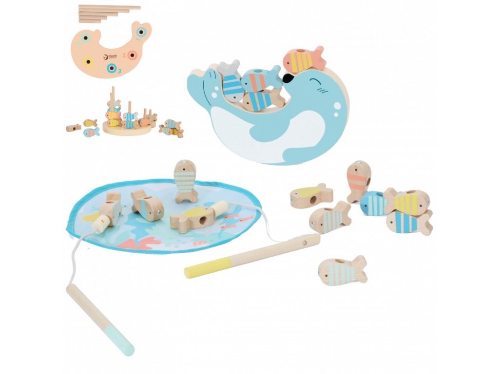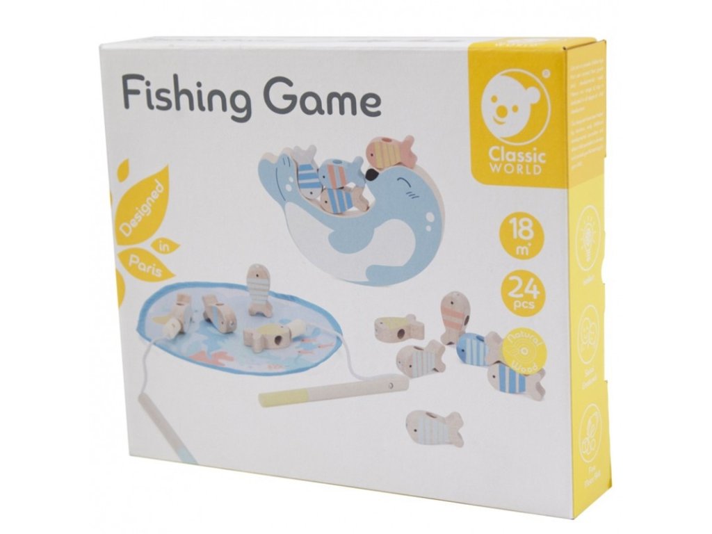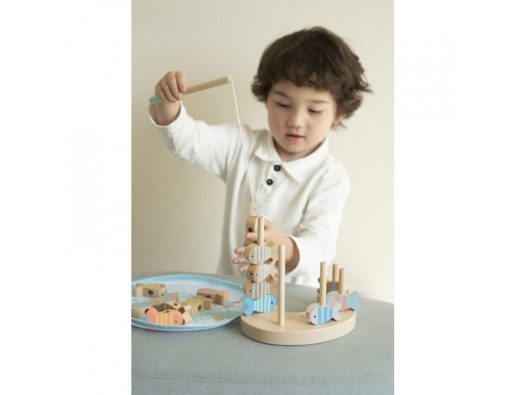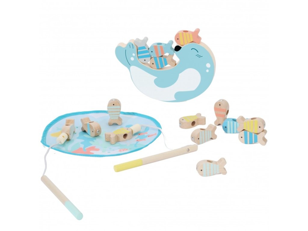 Fa játék - Fishing game egy nagyszerű szórakoztató játék gyerekeknek és az egész családnak. A játékosok feladata a halfogás mágneses horgászbotokkal. Ezzel a fából készült játékkal kellemesebbé teheted a gyerekekkel töltött téli estéket. A játék nyáron is tematikus, viheted magaddal az uszodába vagy a medencébe. Fogjon halakat mágneses rudak segítségével, és helyezze őket egy többfunkciós, aranyos pecsét kialakítású deszkára. A pecséttervező tábla számokat is tartalmaz a gyerekek számára, hogy szórakoztassák a számfelismerést. A családi játék sok mosolyt és örömet okoz gyermekeinek, miközben javítja a reflexeket. A készlet kiváló minőségű anyagból készült.