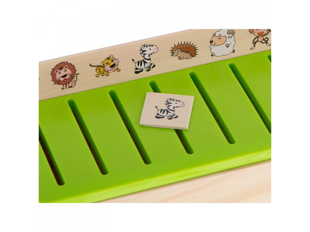 Fantasztikus oktató rejtvények gyerekeknek, amelyek nem csak szórakoztatják a gyermeket, hanem támogatják a megfelelő fejlődését is. Egy nagyszerű játék, amely minden bizonnyal belopja a világot felfedezni vágyó kis felfedező szívét. A játék abból áll, hogy a képet a megfelelő lyukakba illesztjük, amelyek egy nagy fatáblán találhatók az egyes képek alatt.
