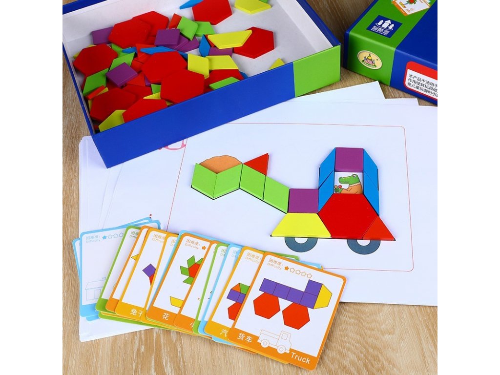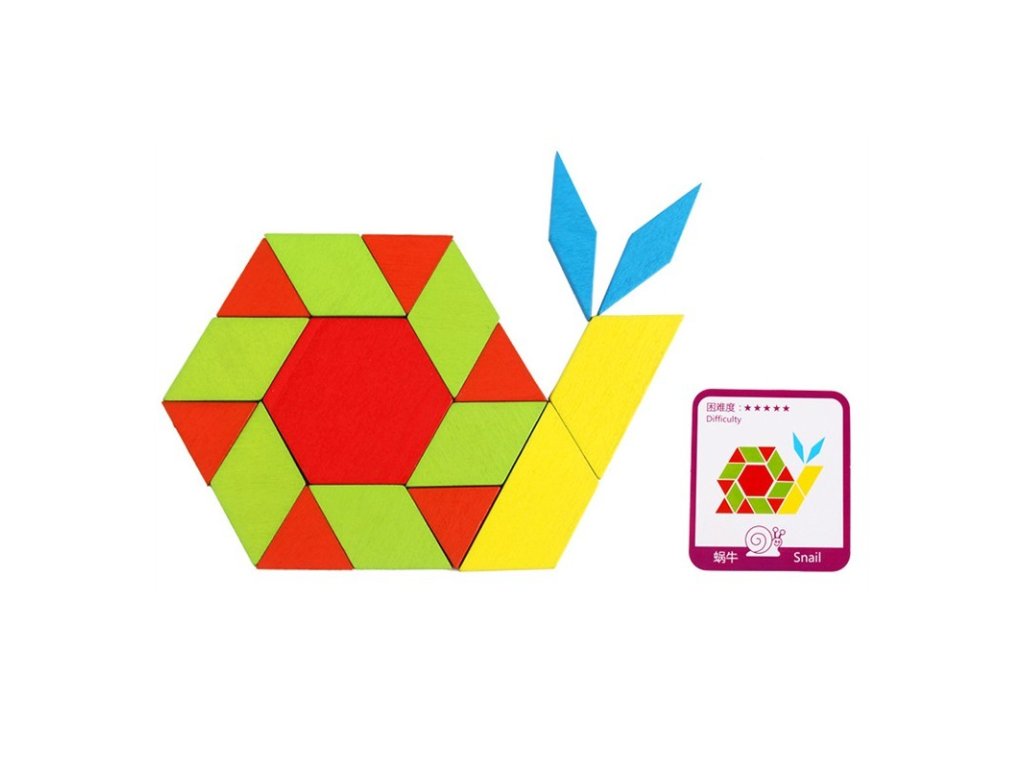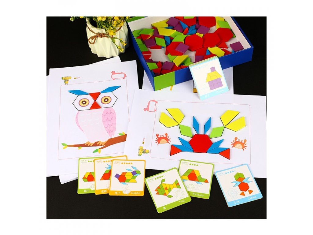 A 130 elemből álló nagyon élénk színű készlet lehetővé teszi a gyermek számára, hogy órákat töltsön el igazán kreatív tevékenységgel. Mi ennek a kreatív fajátéknak az elve? A készlet sablonokkal ellátott kártyákat tartalmaz, így nem kell mást tenni, mint a kártyákra rajzolt minták szerint elhelyezni a blokkokat. Ez azonban nem feltétel! A gyerek a kockákat különféle formákba rendezheti, és érdekes mozaikképeket készíthet. A blokkokat sablonként is használhatjuk a rajzoláshoz, és a minta papíron történő elrendezése után könnyedén kiszínezhetjük a képet. A kockák fából készültek, nagyon könnyűek és nem tartalmaznak éles széleket, amelyeket egy gyermek elvághatna. A készlet tartalmaz egy táskát is, amelybe beleteheti a puzzle-t, anélkül, hogy az egyes elemek elveszítené a kezelésüket.