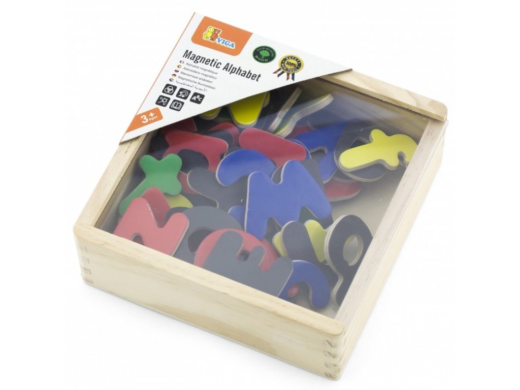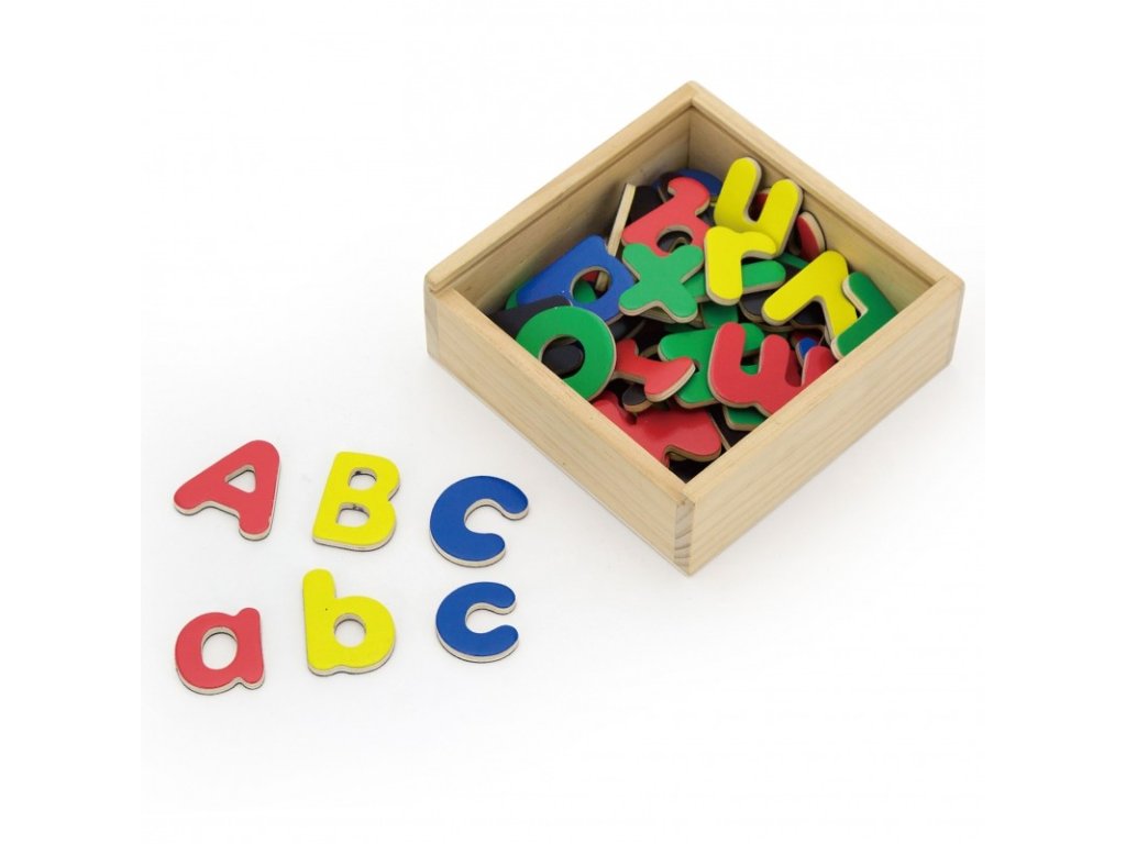 A fa mágneskészlet 52 különböző betűt tartalmaz. A mágneses ábécé megtanítja gyermekét a betűk megtanulására és a szavak elrendezésére. A mesés színű mágnesek egy speciális mágnestáblára vagy a hűtőszekrényre tapadnak.