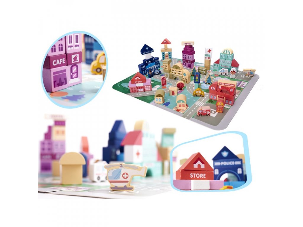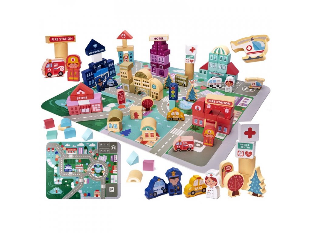 Fából készült intelligens puzzle gyerekeknek - Város 100 elem