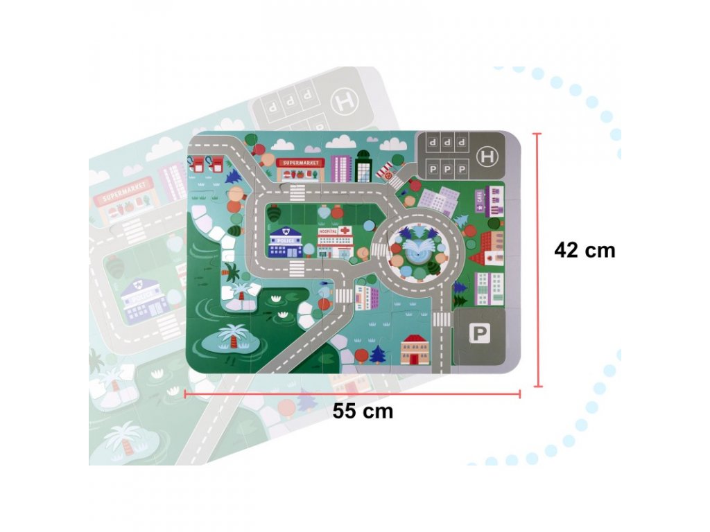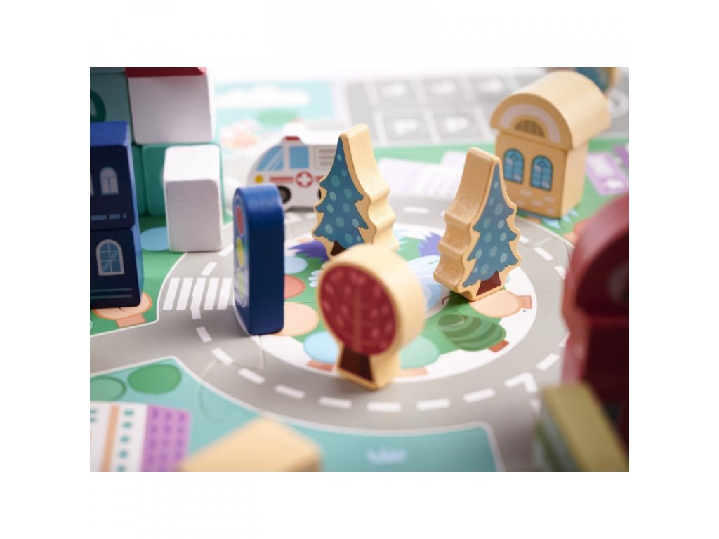 A fából készült rejtvények végtelen játéklehetőségeket kínálnak gyermekeinek. A színes rejtvények teljes egészében fából készültek. A móka abból áll, hogy az egyes elemeket úgy rendezzük el, hogy azok egy kis várost alkossanak. Ez az oktatási játék fejleszti a finom motoros készségeket és inspirálja a kreativitást. A gyerekek megtanulják felismerni a színeket és a formákat. Serkenti a kreativitást és a logikus gondolkodás képességét.