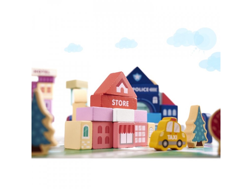 A fából készült rejtvények végtelen játéklehetőségeket kínálnak gyermekeinek. A színes rejtvények teljes egészében fából készültek. A móka abból áll, hogy az egyes elemeket úgy rendezzük el, hogy azok egy kis várost alkossanak.