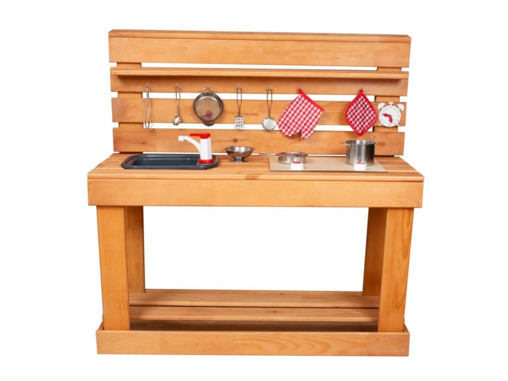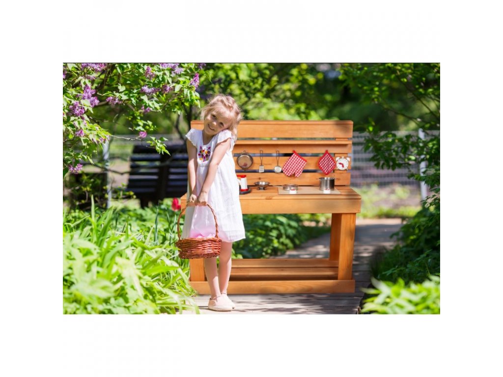 A maximális biztonság és szórakozás érdekében szeretettel tervezett fa konyhabútorunk ideális 3 éves és annál idősebb gyermekek számára. Minden részlet gondosan tartós és biztonságos fából készült, ami hosszú élettartamot és megbízhatóságot garantál.