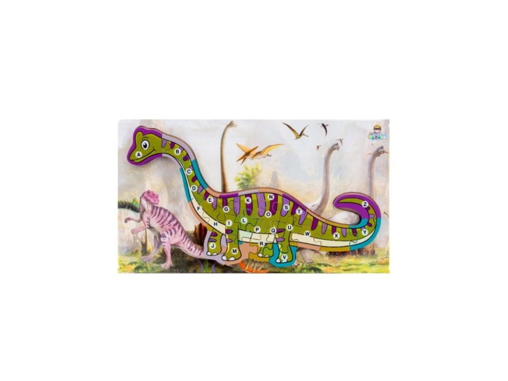A növényevő Brachiosaurus mintájú fából készült kirakós játék segítségével a gyermek játékos formában megtanulhatja a teljes ábécét, és egyben támogatja a logikus gondolkodást, ami rendkívül fontos a gyermek fejlődése szempontjából. Az egyes puzzle-darabok élénk színekben készülnek, érdekes háttérrel az alján, ami játékra motiválja a gyermeket. Az ábécé a kép helyes kompozíciójához is segítséget nyújthat. Ez a termék megfelelő ajándékötlet az őskori lények rajongóinak.