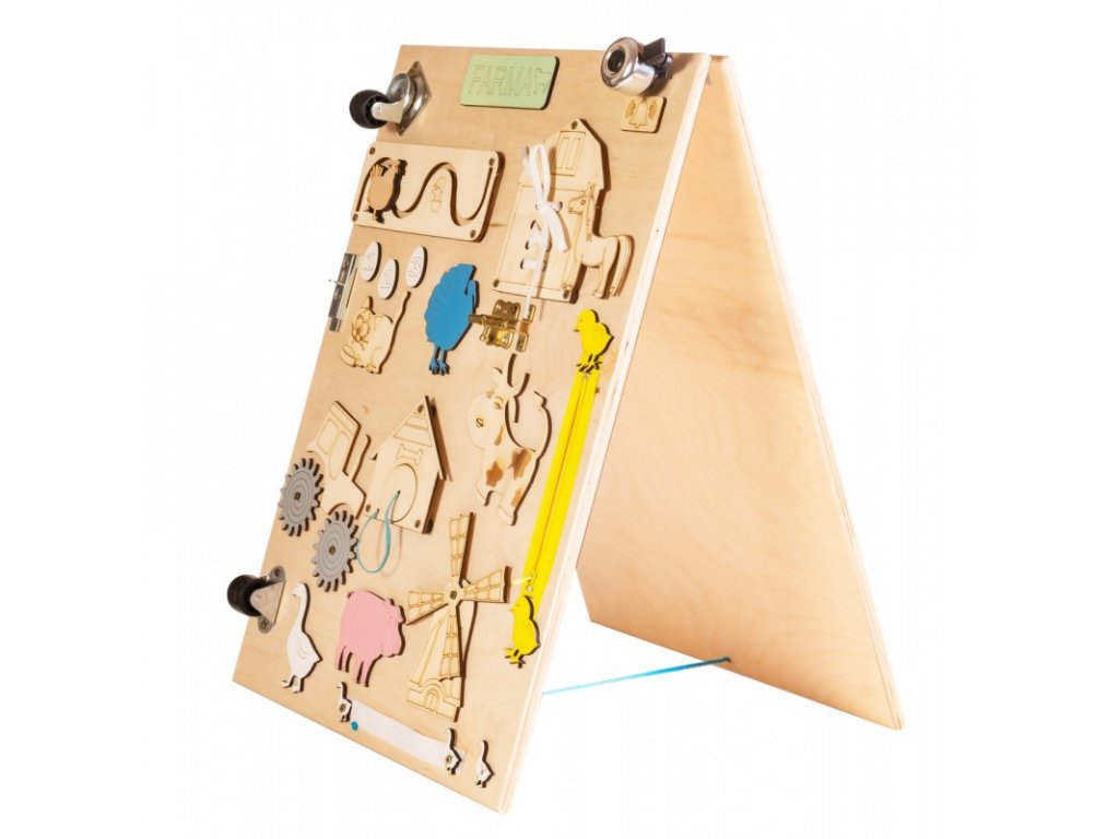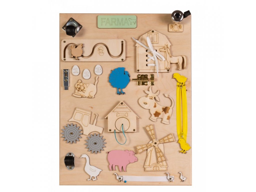 Kétoldalas gyermek szenzoros tábla - Farm - natúr