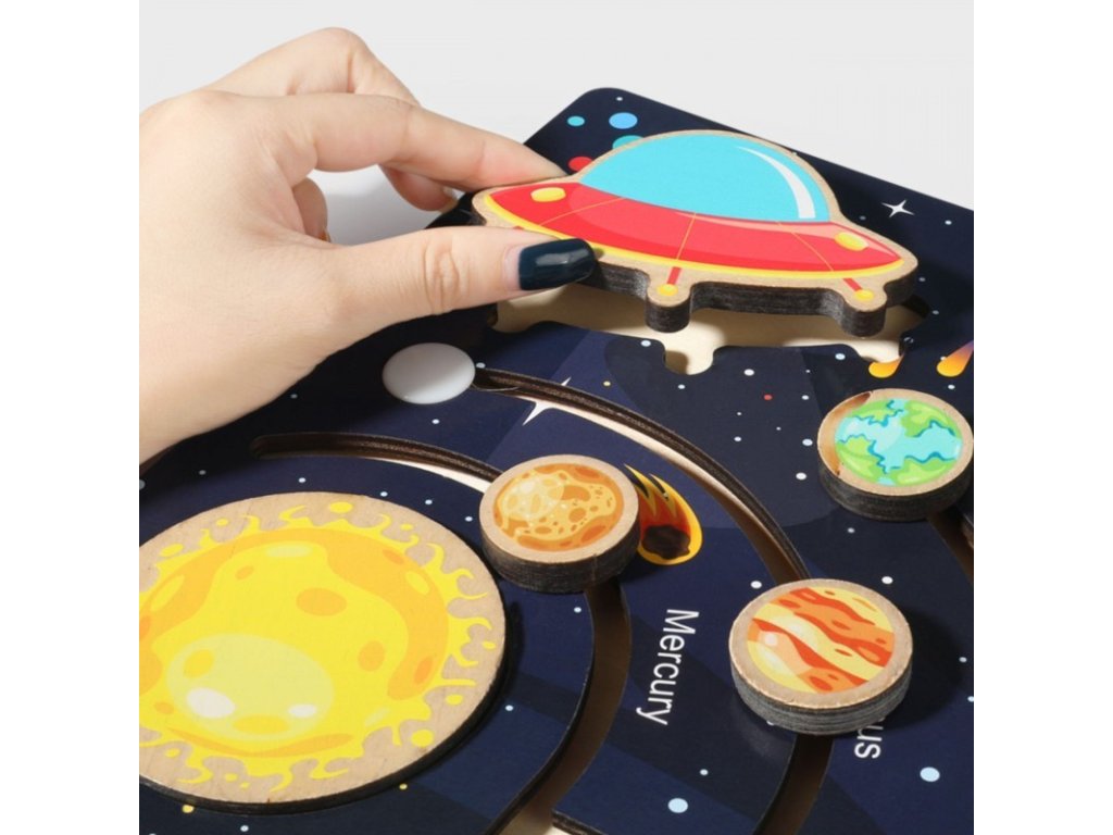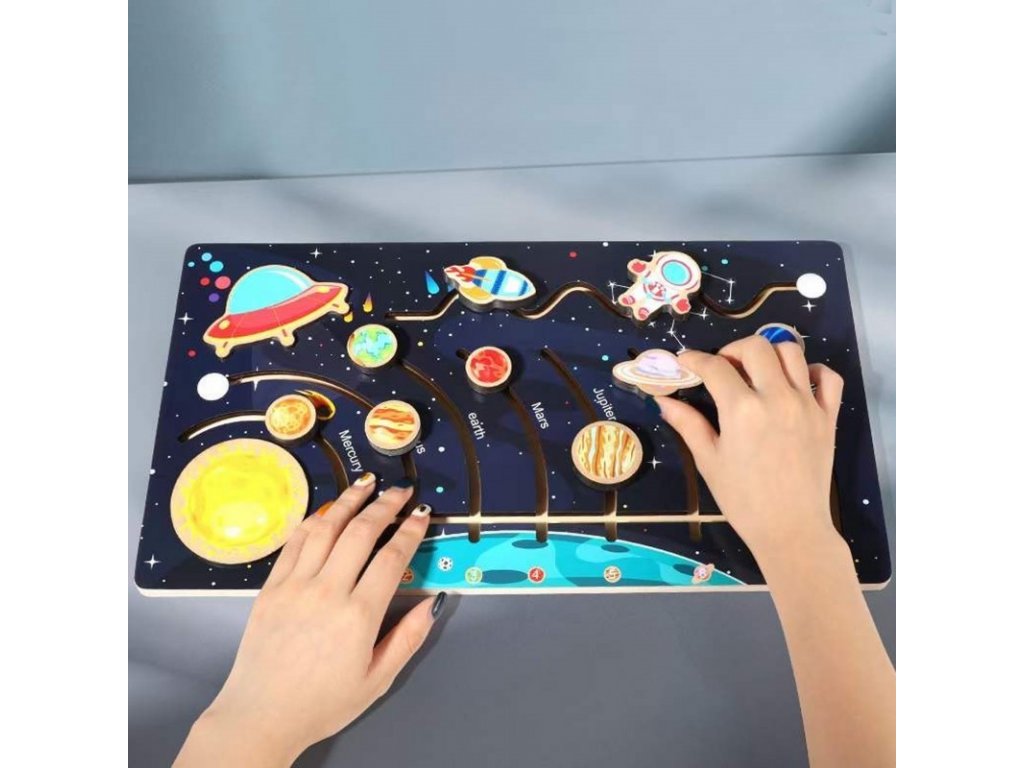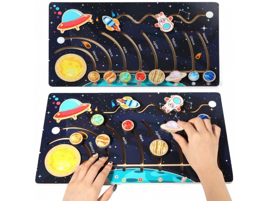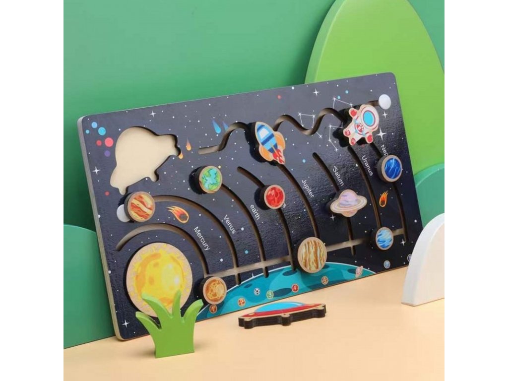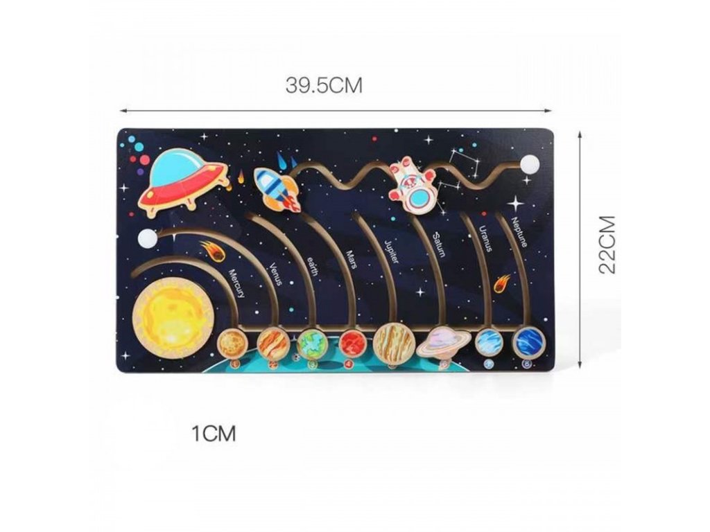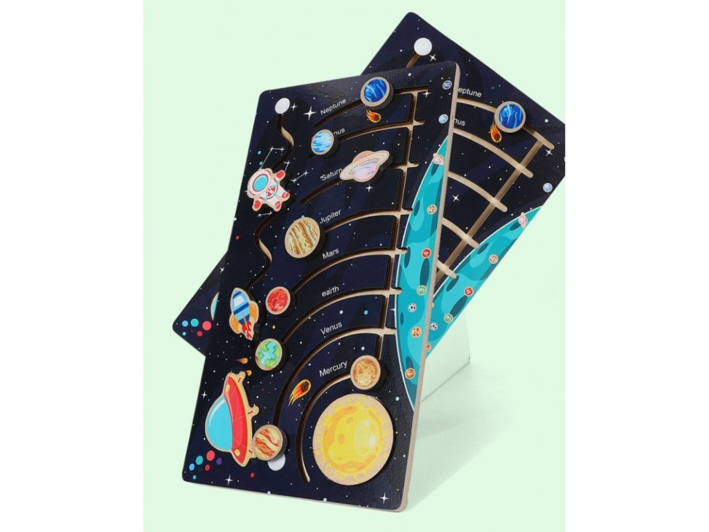 Üdvözöljük az űr csodálatos világában Montessori falabirintusunkkal - Naprendszerünkkel! Itt az ideje, hogy gyermeke felfedezze a Naprendszer titkait és szépségeit. Egyedülálló Montessori falabirintusunkkal kis felfedezője egy izgalommal és oktatással teli kalandra indulhat. Ez a labirintus több, mint játék – ez egy olyan eszköz, amely fejleszti gyermeke kritikus gondolkodását, térbeli tájékozódását és finommotorikus készségeit. A labirintus tapasztalata fejleszti a megfigyelőkészséget, a logikus gondolkodást és a kreatív gondolkodást. A Montessori falabirintusok szeretettel és odafigyeléssel készülnek minőségi fából. Minden részletet, beleértve a színes bolygókat és a pontos kivágásokat is, úgy tervezték, hogy megragadják Naprendszerünk szépségét és egyediségét. Gyermeke megérintheti, felfedezheti és megismerheti az egyes bolygókat, miközben megtanulja a bolygók elrendezésének sorrendjét. Ezenkívül ez a labirintus nagyszerű oktatási eszköz. Kiváló módja tehát az űrrel kapcsolatos alapismeretek fejlesztésének és a csillagászat iránti érdeklődés felkeltésének. Hagyja, hogy gyermeke felfedezze az univerzum titkait Montessori falabirintusunkkal - Naprendszerrel. Hagyja, hogy az univerzum életre keljen otthonában. Szerezze be Montessori Fa Labirintusunkat – Naprendszerünket még ma, és segítsen gyermekeinek fejleszteni kíváncsiságát, kreativitását és tudományszeretetét!
