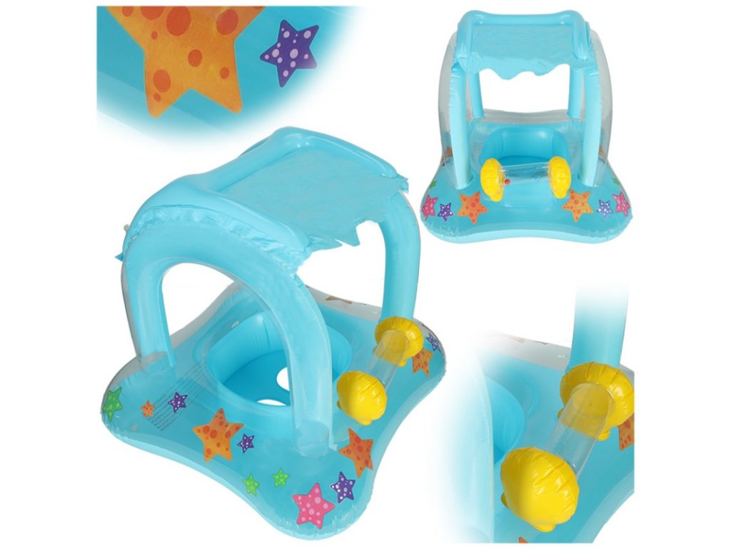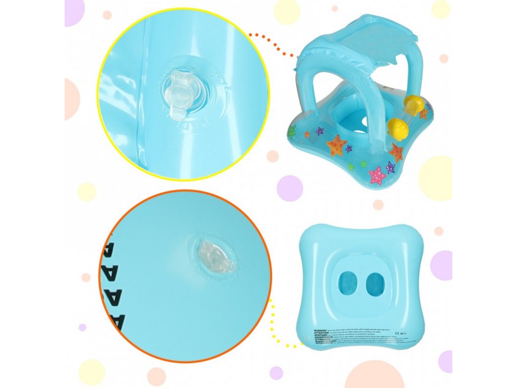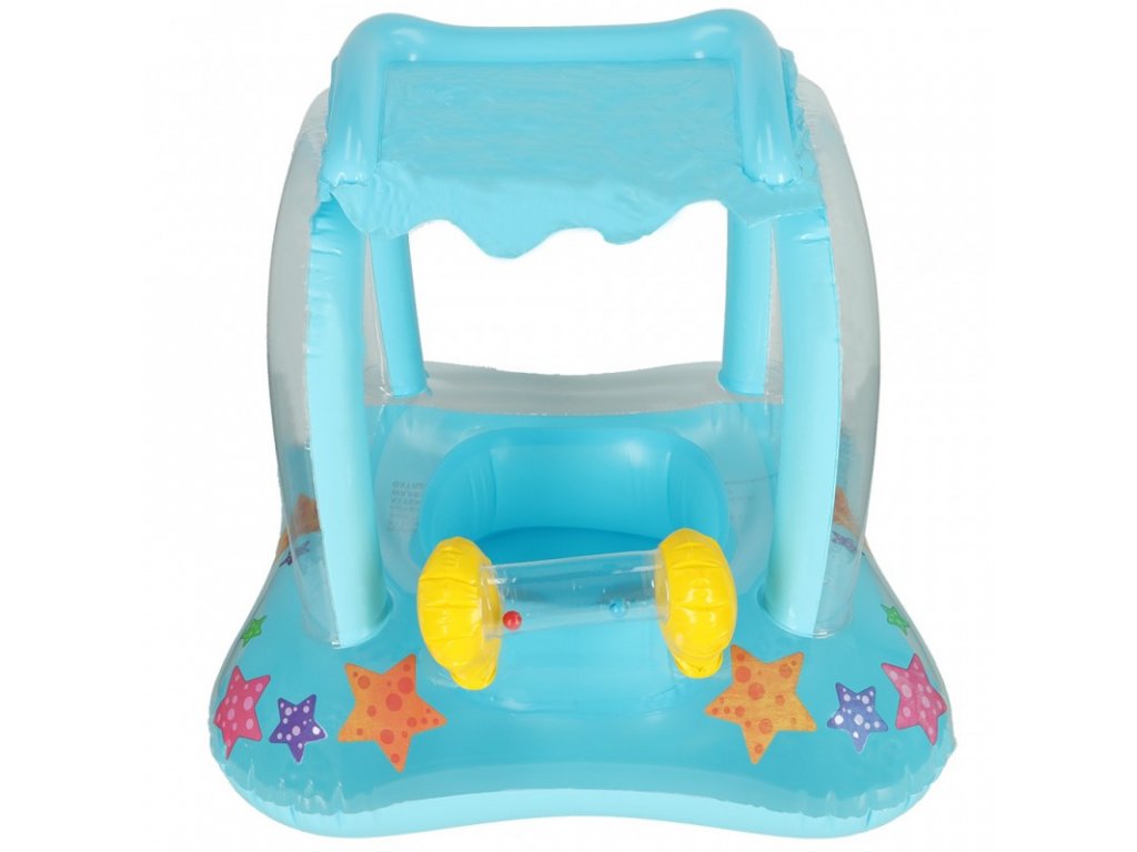 Nyaralni vagy úszni megy kisgyerekkel? Ez a csónak ideális a víz vagy a medence melletti pihenéshez, melynek során a gyermek tökéletesen megszokja a vizet és a vízi környezetet. Ez a kiváló minőségű PVC anyagból készült védőburkolatú gyermekcsónak garantálja a napfény és a sós víz ellenálló képességét, ami biztosítja a hosszú távú használatát. Az íves alapokon található praktikus tető megakadályozza a bőr égési sérüléseit, a csörgő golyókkal ellátott henger pedig addig tartja a gyermek figyelmét, amíg a gyermek teljesen el nem kezdi élvezni a vizet. A csónakot speciális gyermeküléssel látták el, kerek lyukakkal a lábak számára, aminek köszönhetően a gyermek nem veszíti el a kapcsolatot a vízzel. Az élénk szín és az érdekes forma készteti a gyermeket arra, hogy többet játsszon a vízben.