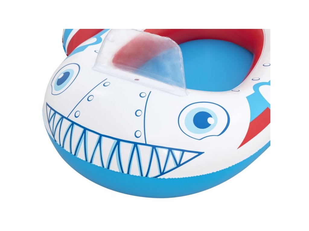 Repülőgépre emlékeztető színes ponton mosolygós arccal a Bestway legújabb ajánlata az idei nyárra. Ez a modell nem tartalmaz lyukakat a lábak számára, ezért csak 3 éves kortól alkalmas gyermekek számára. A ponton a vízben való játék közben számos látnivalót kínál gyermekének, és tartós vinilből készült, szeleppel, amely megakadályozza a levegőveszteséget. A repülőgép grafikája rendkívül vonzóvá teszi a terméket a repülés szerelmesei számára. A ponton kizárólag vízben való használatra készült, olyan mélységben, hogy a gyermek érezze a fenekét, szülői felügyelet mellett. A strandponton könnyű és praktikus. Nem foglal sok helyet és nem kell pumpa a felfújásához, így bárhová magaddal viheted. A szenzációs pontonrepülő vidám színekben remek szórakozást nyújt gyermekének a forró napokon, és érdekes vízi kalandra készteti.