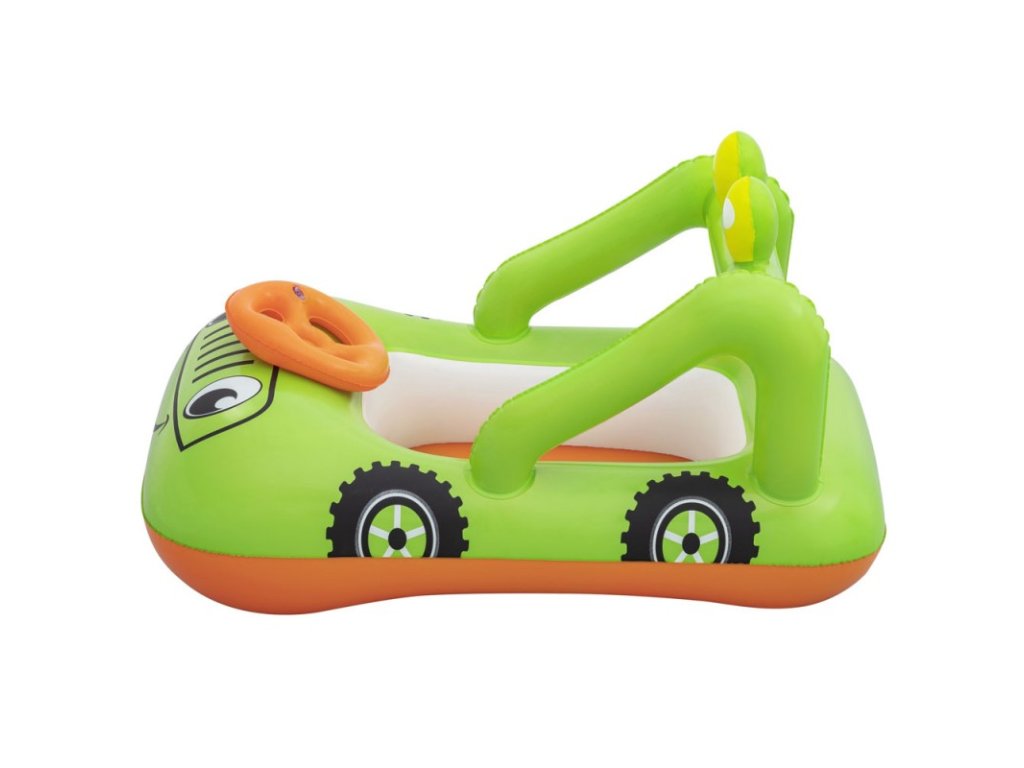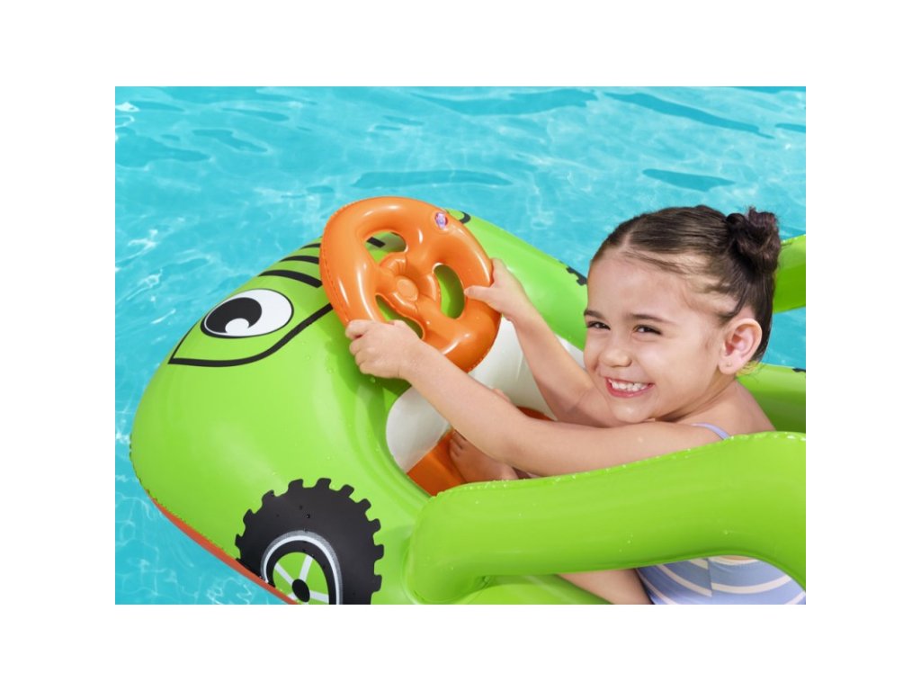 Egy színes, terepjáróra emlékeztető ponton mosolygós arccal a Bestway legújabb ajánlata erre a nyárra. Ez a modell nem tartalmaz lyukakat a lábak számára, ezért csak 3 éves kortól alkalmas gyermekek számára. A ponton a vízben való játék közben számos látnivalót kínál gyermekének, és tartós vinilből készült, szeleppel, amely megakadályozza a levegőveszteséget. A terepjáték grafikájának köszönhetően a termék rendkívül vonzó lesz a terepjárók szerelmeseinek. A ponton kizárólag vízben való használatra készült, olyan mélységben, hogy a gyermek érezze a fenekét, szülői felügyelet mellett. A strandponton könnyű és praktikus. Nem foglal sok helyet és nem kell pumpa a felfújásához, így bárhová magaddal viheted. A szenzációs ponton autó vidám színekben remek szórakozást nyújt gyermekének a forró napokon, és érdekes vízi kalandra készteti.