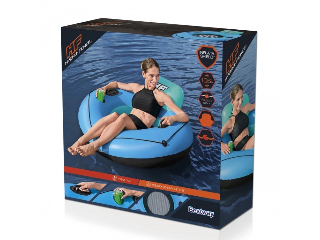 A jól ismert Bestway márka felfújható gyűrűje tökéletes megoldás egy nyári nyaraláshoz a tenger mellett, egy tó mellett a medencében vagy a saját kertben. A felfújható szék strapabíró PVC anyagból készült, amely több évig kitart. A szék kényelmes háttámlával rendelkezik, amely biztosítja a kényelmet úszás és napozás közben. A kerék alsó részét háló borítja, ami kényelmes ülést biztosít, ráadásul a víz hűsít pihenés közben. Ezenkívül a szék egy speciális hellyel van felszerelve egy pohár vagy palack számára, aminek köszönhetően itala mindig biztonságban kéznél lesz. A felfújható úszószék nagyszerű ajánlat azoknak, akik értékelik a kényelmet és a pihenést a friss levegőn.
