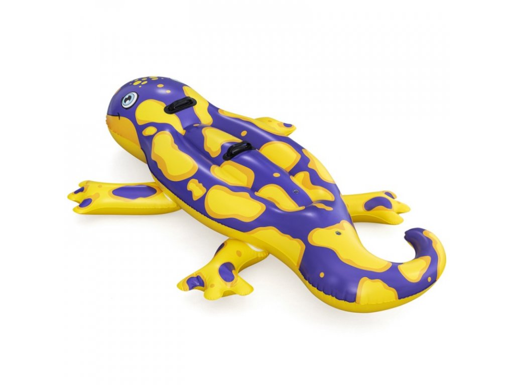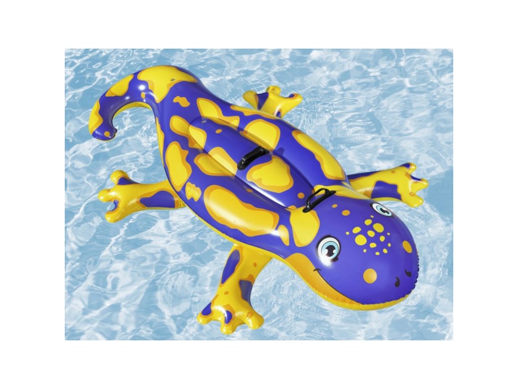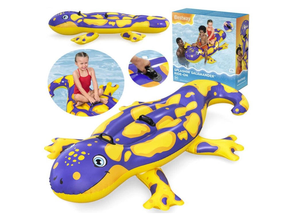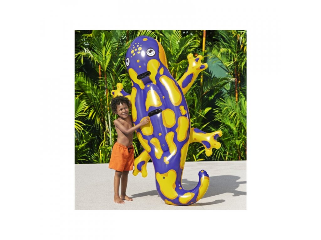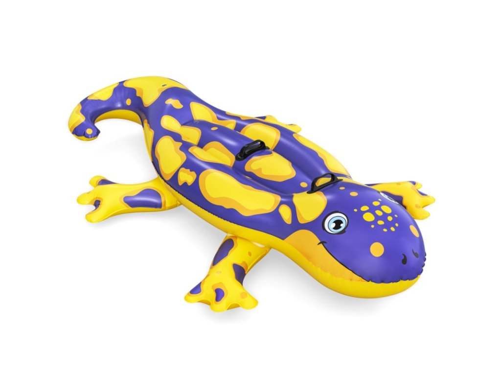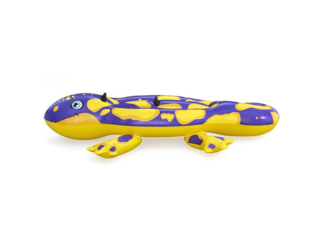 A színes, szalamandra alakú felfújható matrac a közelgő nyár legújabb ajánlata. Az érdekes grafika, az élénk színek és a szokatlan formák minden gyermek számára tetszeni fognak. A felfújható matrac mérete (191 x 119 cm) és kidolgozása azt jelenti, hogy két gyerek is könnyedén elfér a szalamandra hátán.