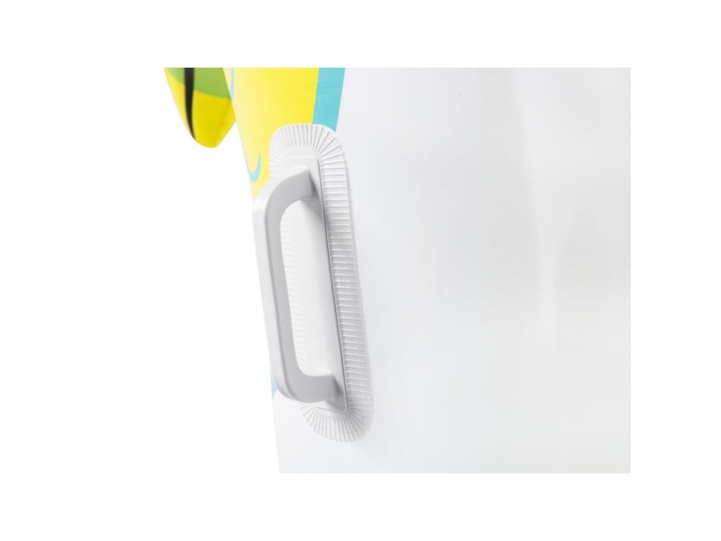 A Bestway® Toucan Pool Day Ride-On tökéletes ajánlat minden gyermek számára. Remek lesz a szórakozáshoz a hátsó udvarban a medencében, valamint egy nyaraláshoz. A ponton kiváló minőségű PVC anyagból készült, amely ellenáll a sérüléseknek és a napfénynek, emellett két erős fogantyúval is fel van szerelve, amelyek segítik a gyerekek megtartását a vízben való játék közben. A gyönyörű színes tukán egyedi és eredeti formájú felfújható csónakja minden bizonnyal sok madárrajongó figyelmét felkelti, tökéletes lesz a tenger, a tó vagy az úszómedence melletti pihenéshez. A felfújható sziget könnyű és kézreálló, nem foglal sok helyet, könnyen elfér bármilyen bőröndben, bárhová magaddal viheted. Ideális szórakozáshoz a medencében, a tónál vagy a tengernél.