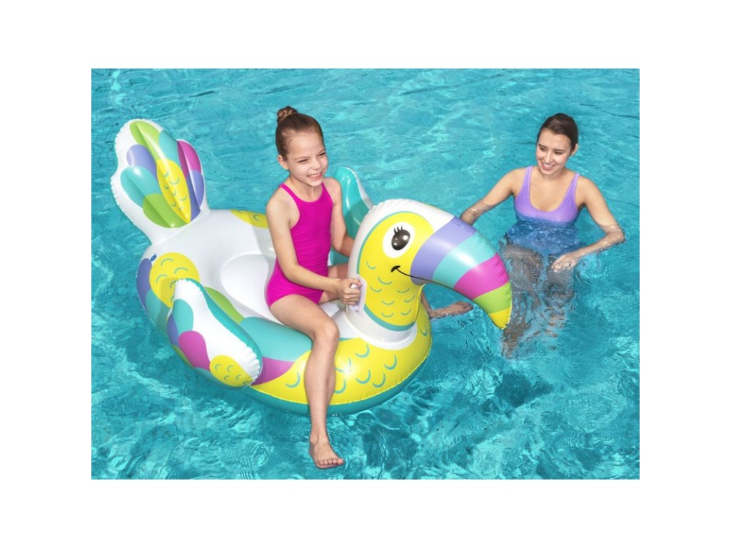 A Bestway® Toucan Pool Day Ride-On tökéletes ajánlat minden gyermek számára. Remek lesz a szórakozáshoz a hátsó udvarban a medencében, valamint egy nyaraláshoz.