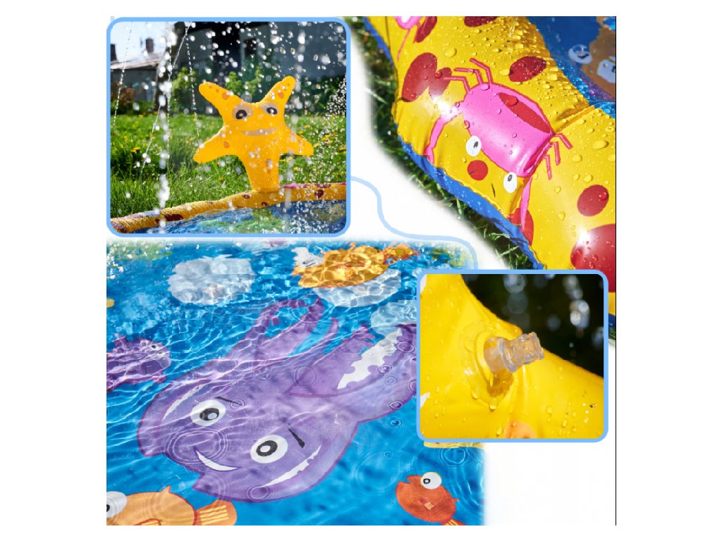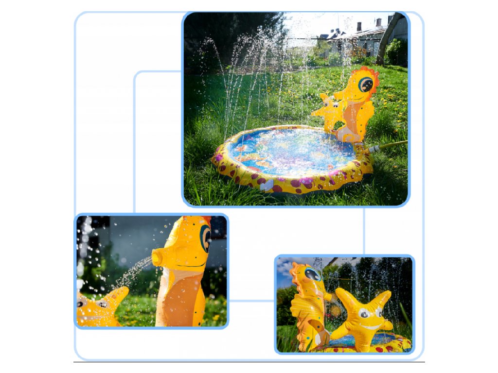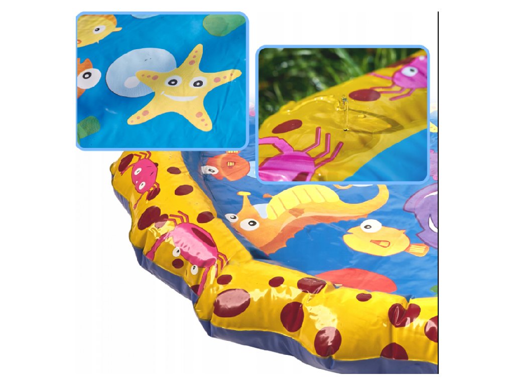 Készüljön fel a nyári szórakozásra gyerekeknek szánt felfújható szökőkútunkkal! A Summer Vibes felfújható szökőkúttal gyermekei hihetetlen szórakozásban részesülnek közvetlenül a kertben vagy a teraszon. Ez a szökőkút tökéletes bulikhoz, piknikekhez vagy egyszerű nyári napokon. A Summer Vibes szökőkút számos szórakoztató funkcióval rendelkezik, amelyeket gyermekei imádni fognak. A szökőkút pillanatok alatt könnyen csatlakoztatható a kerti tömlőhöz, így gyermekei kellemes felfrissülést kaphatnak a forró nyári napokon. Ezenkívül a szökőkút szórakoztató vízhatásokat is létrehoz, amelyeket gyermekei imádni fognak. A felfújható szökőkút minőségi és strapabíró anyagból készült, így a gyerekek egész nyáron többször is használhatják. A vizes szőnyeg kialakítása minden bizonnyal minden gyermek figyelmét felkelti - színes színek, aranyos grafika tengeri állatokkal, két csikóhal és tengeri csillag alakú karakter nem hagyja, hogy közömbösen elhaladjon mellette! Szerezze be most a Summer Vibes felfújható szökőkutat, és tegye udvarát a szórakozás és a kellemes felfrissülés nyári oázisává gyermekei számára!