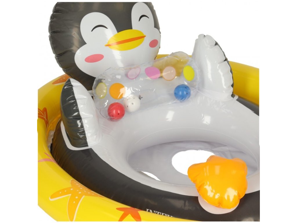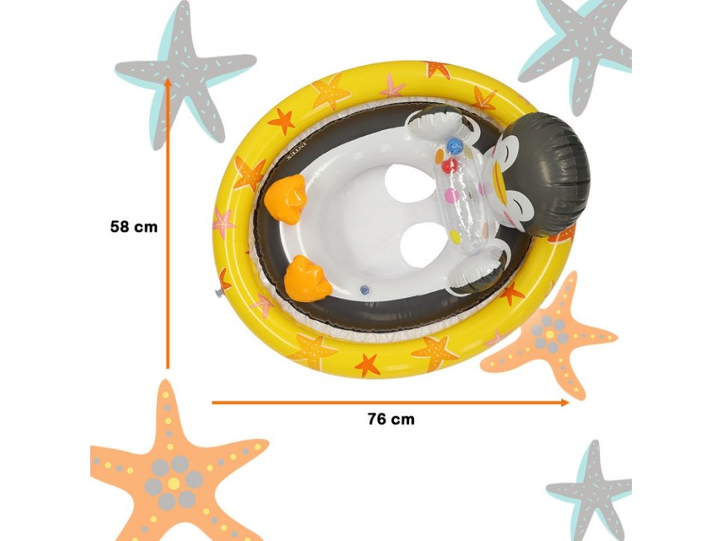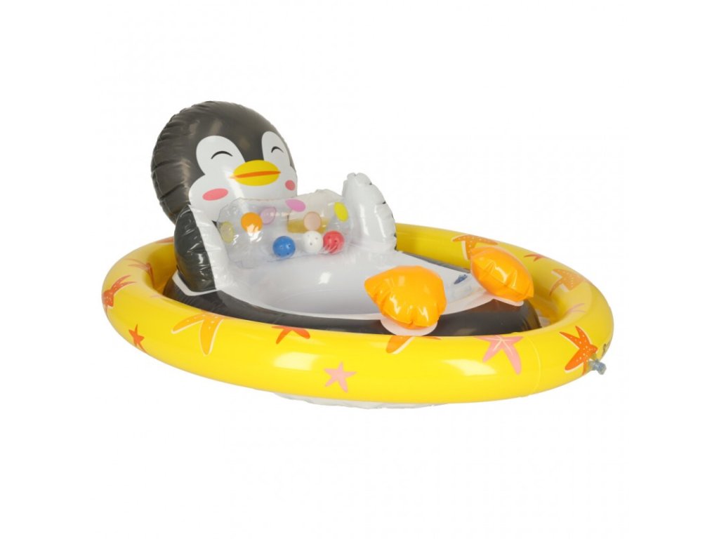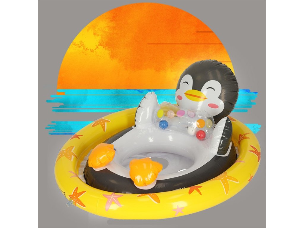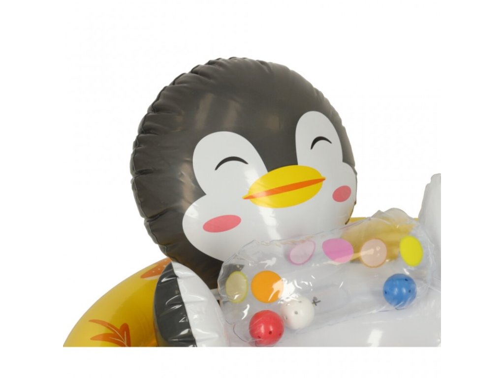 Egy kirándulás a vízhez gyerekekkel? Vagy szeretnél együtt uszodába menni? Akkor biztosan szüksége lesz gyermekének egy úszógyűrűre, amivel úgy érzi magát, mint hal a vízben! A pingvin formájú színes úszókerék minden gyermeket arra ösztönöz, hogy vízbe szálljon és új kalandokba vegyen részt! Sőt, egy ilyen aranyos kör alakú forma biztosan sok figyelmet vonz! Sok gyereknek jelentős problémái lehetnek a készségek elsajátításával, amikor először érintkezik vízzel, vagy egyszerűen csak fél a vízbe merüléstől - ilyen helyzetekben azonban egy stabil felfújható kerék biztosan segít. A pingvin útitárs lesz a vízi kalandokhoz, ami biztosan minden gyermeket felvidít! A termék 3-4 éves gyermekek számára készült, méretei 84 x 58 centiméterek, maximális teherbírása 23 kg. Az egykamrás kialakítás nagyon gyors felfújást biztosít, ami problémamentesen kezelhető. A tömített visszacsapó szelep pedig gondoskodik arról, hogy a levegő bent maradjon anélkül, hogy aggódna a termék hirtelen leeresztése miatt!