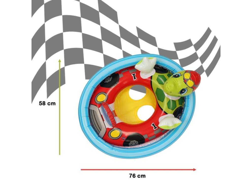 Egy kirándulás a vízhez gyerekekkel? Vagy szeretnél együtt uszodába menni? Akkor biztosan szüksége lesz gyermekének egy úszógyűrűre, amivel úgy érzi magát, mint hal a vízben! A teknős formájú, színes úszókerék minden gyermeket arra ösztönöz, hogy vízbe szálljon és új kalandokba vegyen részt! Sőt, egy ilyen aranyos kör alakú forma biztosan sok figyelmet vonz! Sok gyereknek jelentős problémái lehetnek a készségek elsajátításával, amikor először érintkezik vízzel, vagy egyszerűen csak fél a vízbe merüléstől - ilyen helyzetekben azonban egy stabil felfújható kerék biztosan segít. A teknős kísérője lesz a vízi kalandoknak, ami biztosan minden gyermeket felvidít! A termék 3-4 éves gyermekek számára készült, méretei 84 x 58 centiméterek, maximális teherbírása 23 kg. Az egykamrás kialakítás nagyon gyors felfújást biztosít, ami problémamentesen kezelhető. A tömített visszacsapó szelep pedig gondoskodik arról, hogy a levegő bent maradjon anélkül, hogy aggódna a termék hirtelen leeresztése miatt!
