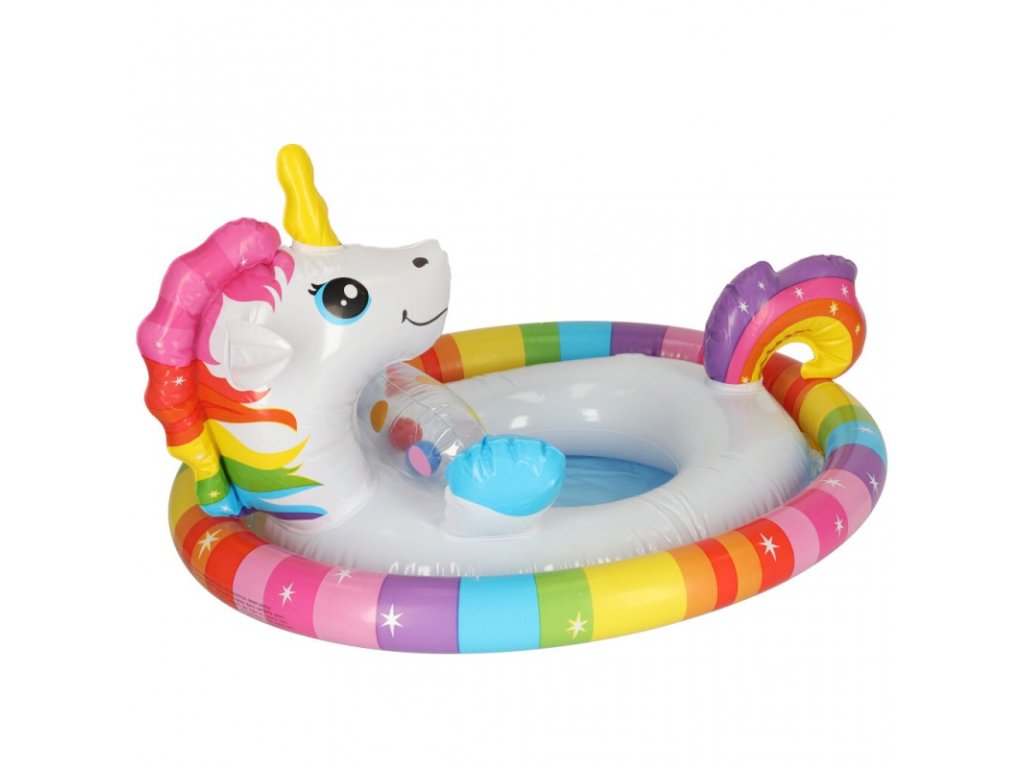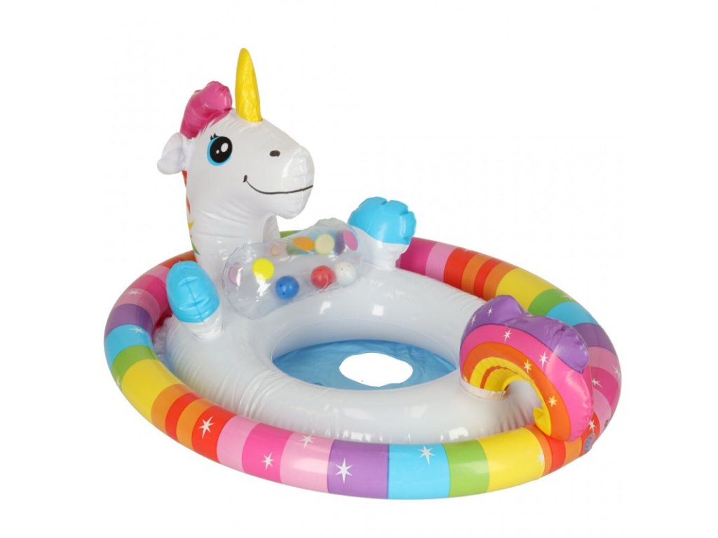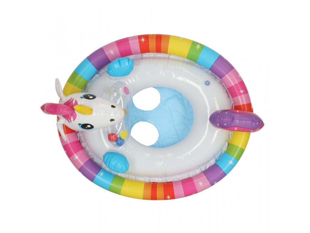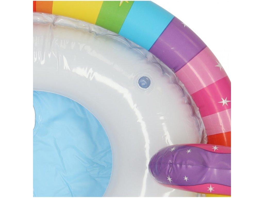 Egy kirándulás a vízhez gyerekekkel? Vagy szeretnél együtt uszodába menni? Akkor biztosan szüksége lesz gyermekének egy úszógyűrűre, amivel úgy érzi magát, mint hal a vízben! A színes, egyszarvú formájú úszókerék minden gyermeket arra ösztönöz, hogy vízbe szálljon és új kalandokba vívjon! Sőt, egy ilyen aranyos kör alakú forma biztosan sok figyelmet vonz! Sok gyereknek jelentős problémái lehetnek a készségek elsajátításával, amikor először érintkezik vízzel, vagy egyszerűen csak fél a vízbe merüléstől - ilyen helyzetekben azonban egy stabil felfújható kerék biztosan segít. Az egyszarvú a vízi kalandok társa lesz, amely biztosan minden gyermeket felvidít! A termék 3-4 éves gyermekek számára készült, méretei 84 x 58 centiméterek, maximális teherbírása 23 kg. Az egykamrás kialakítás nagyon gyors felfújást biztosít, ami problémamentesen kezelhető. A tömített visszacsapó szelep pedig gondoskodik arról, hogy a levegő bent maradjon anélkül, hogy aggódna a termék hirtelen leeresztése miatt!