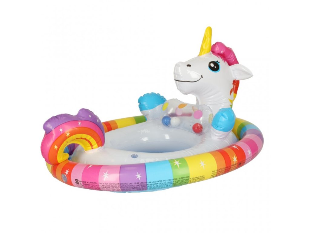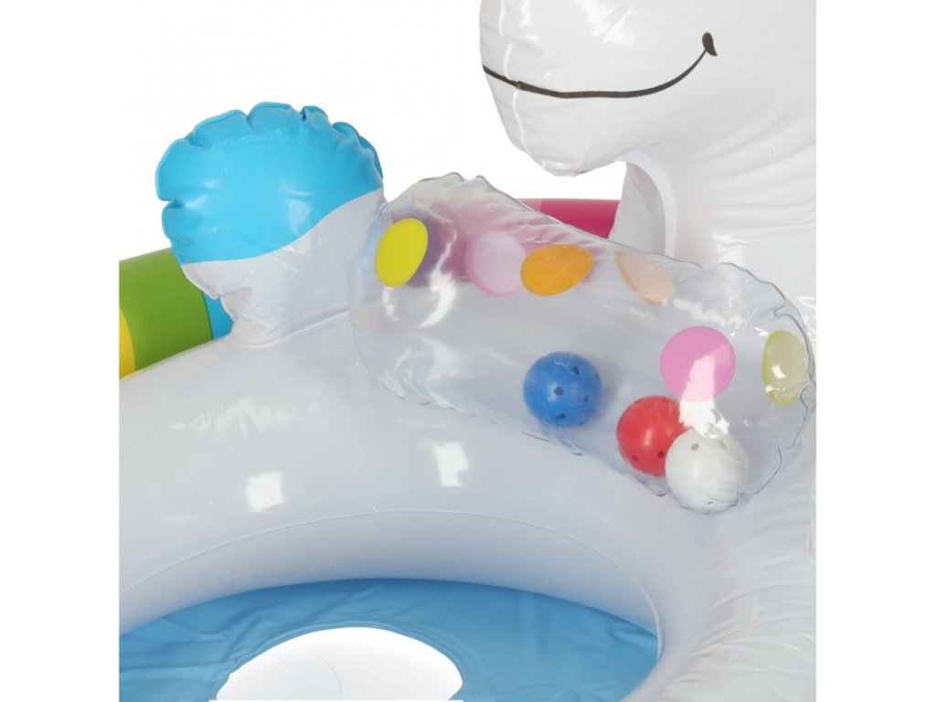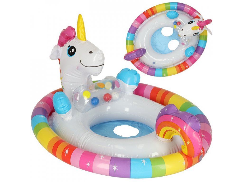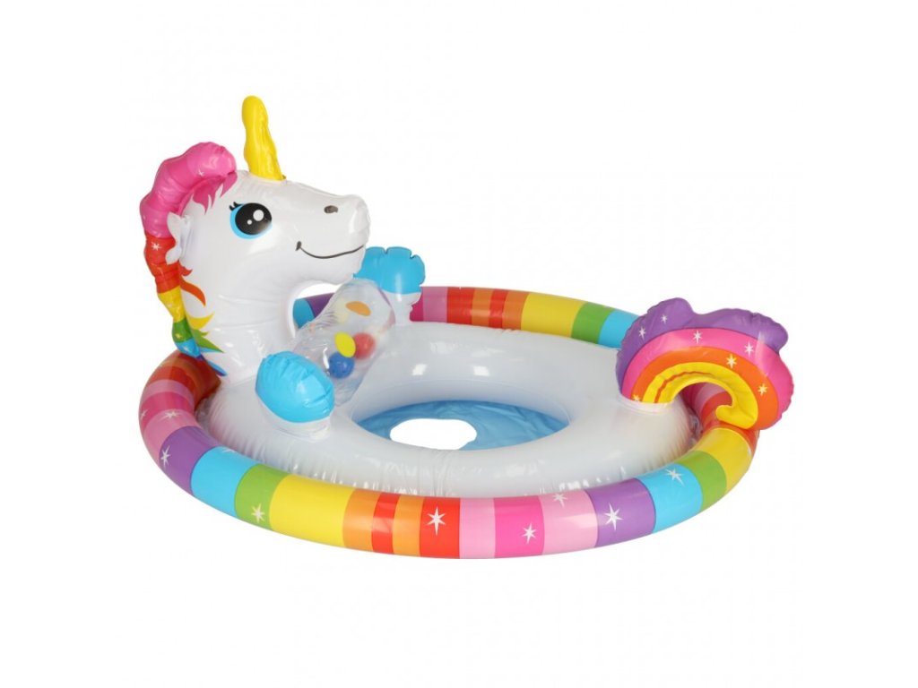 Egy kirándulás a vízhez gyerekekkel? Vagy szeretnél együtt uszodába menni? Akkor biztosan szüksége lesz gyermekének egy úszógyűrűre, amivel úgy érzi magát, mint hal a vízben! A színes, egyszarvú formájú úszókerék minden gyermeket arra ösztönöz, hogy vízbe szálljon és új kalandokba vívjon! Sőt, egy ilyen aranyos kör alakú forma biztosan sok figyelmet vonz! Sok gyereknek jelentős problémái lehetnek a készségek elsajátításával, amikor először érintkezik vízzel, vagy egyszerűen csak fél a vízbe merüléstől - ilyen helyzetekben azonban egy stabil felfújható kerék biztosan segít. Az egyszarvú a vízi kalandok társa lesz, amely biztosan minden gyermeket felvidít! A termék 3-4 éves gyermekek számára készült, méretei 84 x 58 centiméterek, maximális teherbírása 23 kg. Az egykamrás kialakítás nagyon gyors felfújást biztosít, ami problémamentesen kezelhető. A tömített visszacsapó szelep pedig gondoskodik arról, hogy a levegő bent maradjon anélkül, hogy aggódna a termék hirtelen leeresztése miatt!